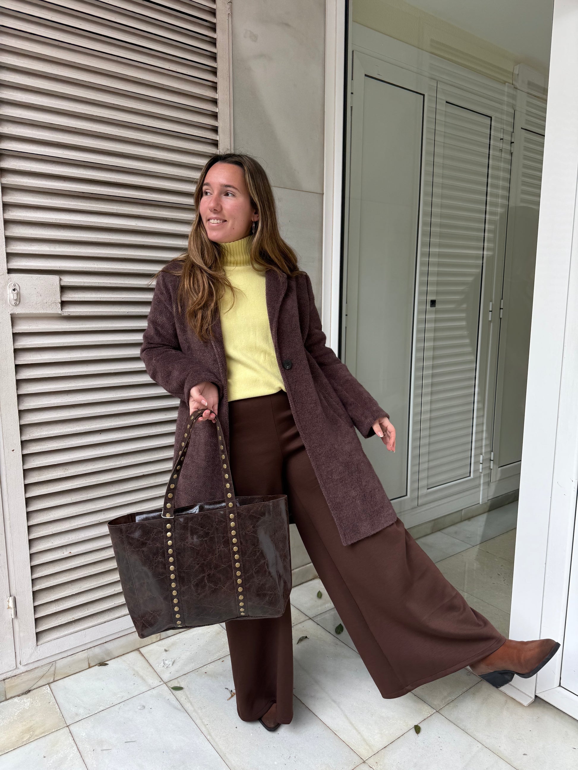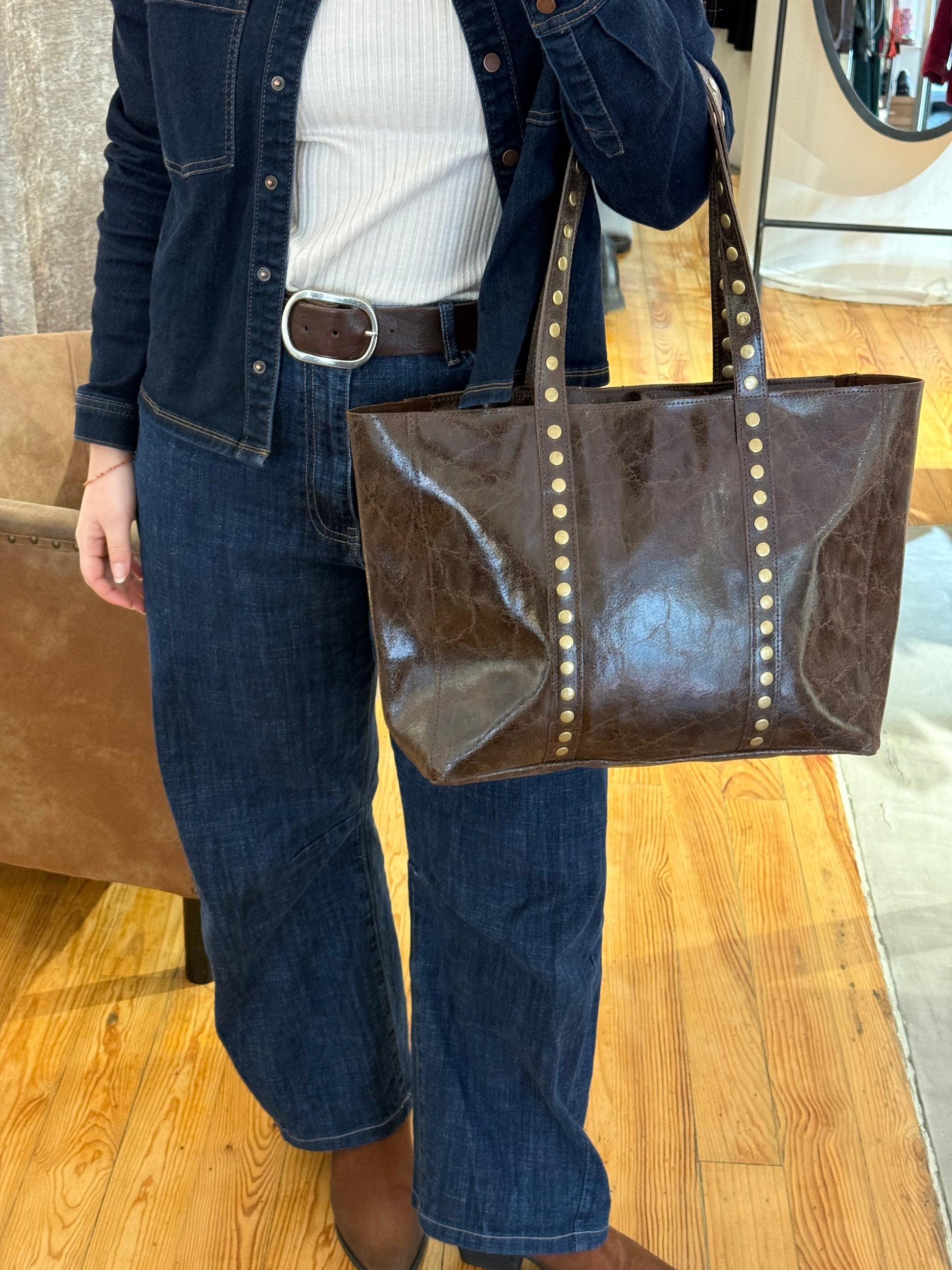 Bolso Piel grande con tachuelas doradas.