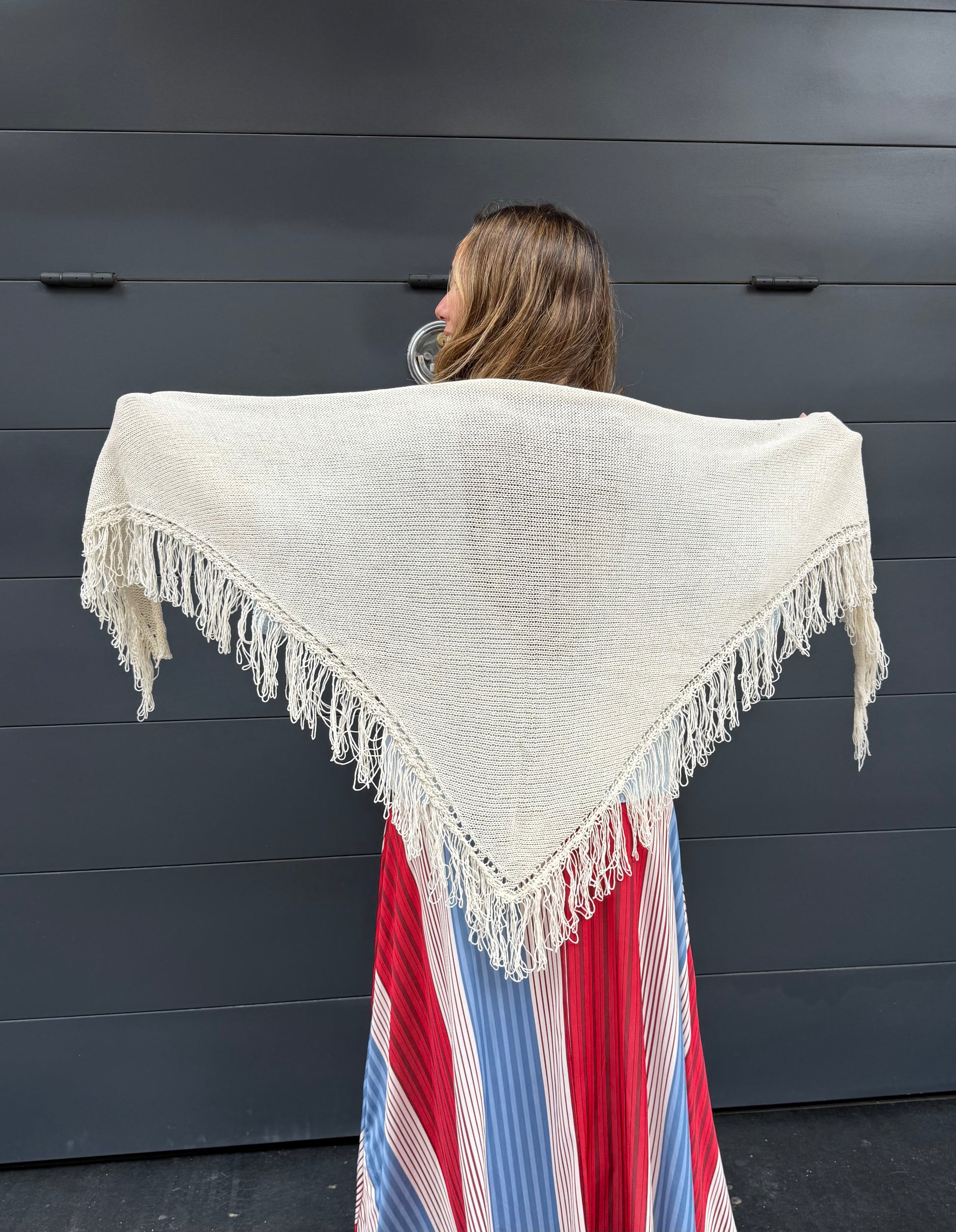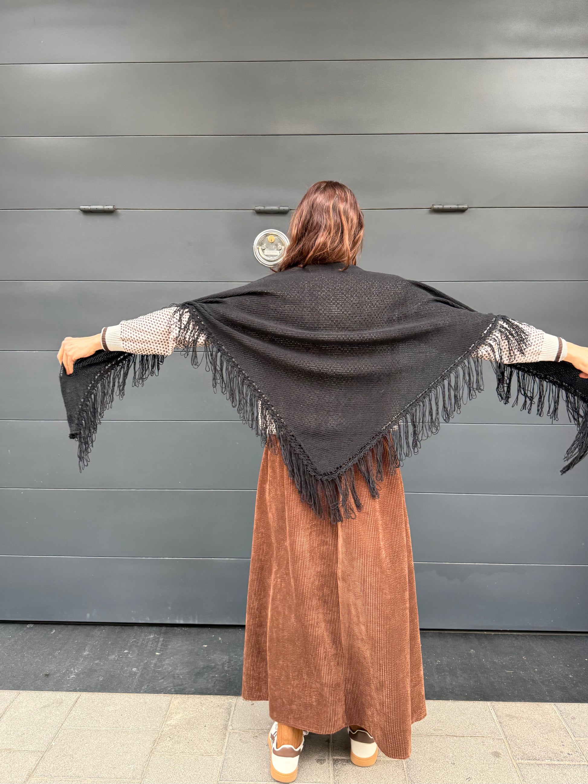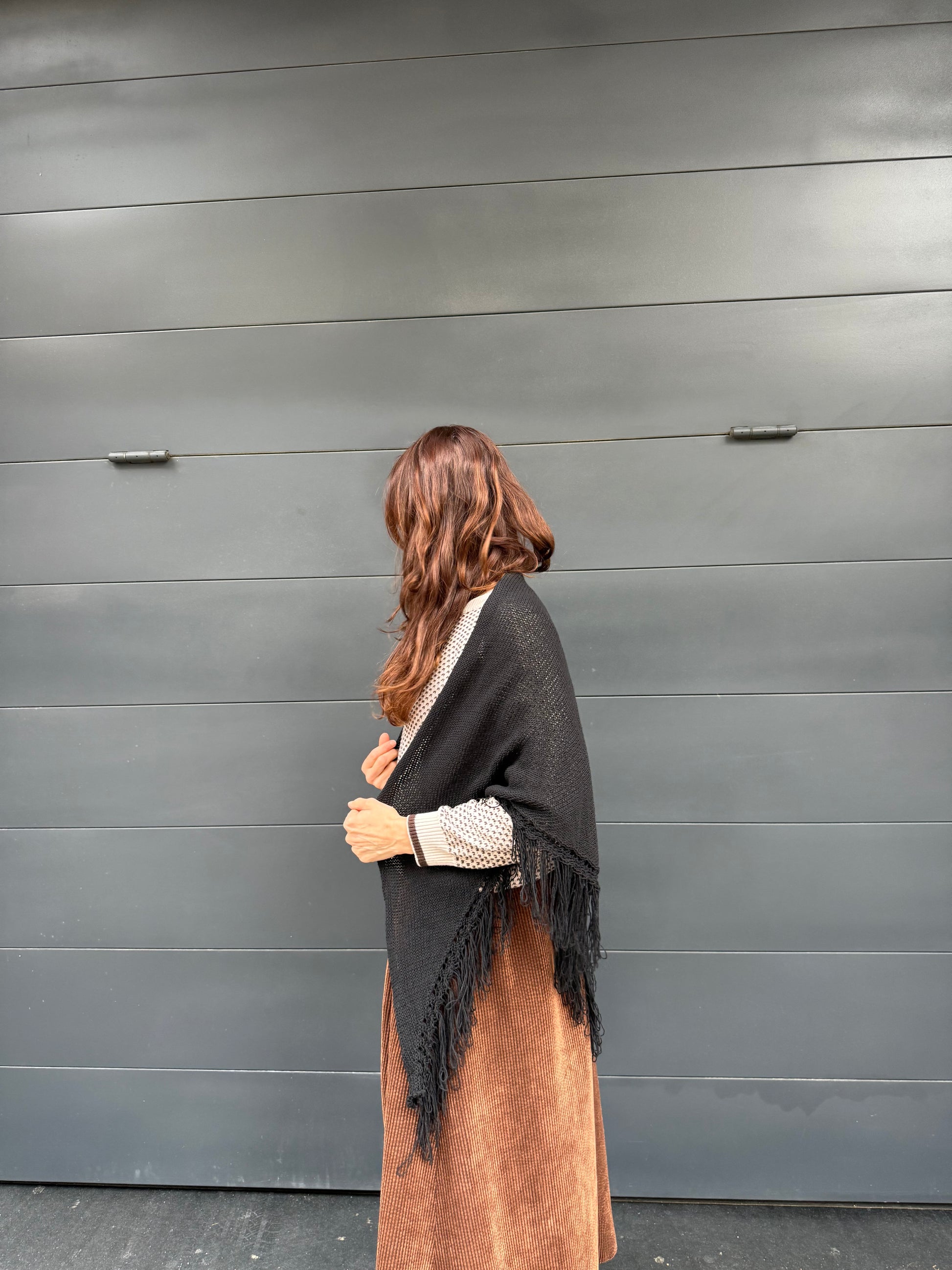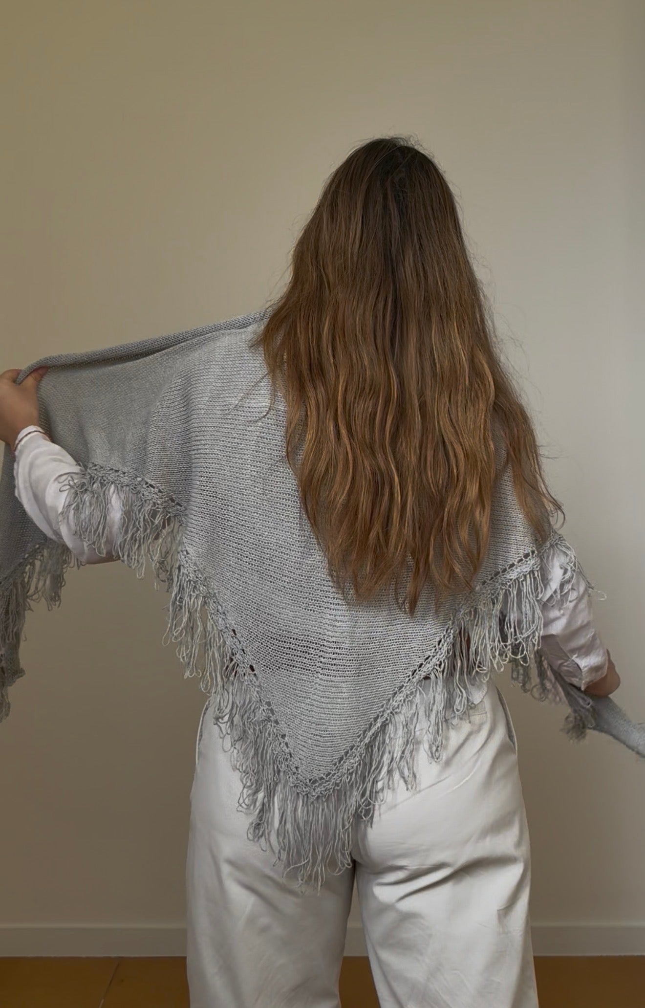 Poncho capa de flecos de algodón.