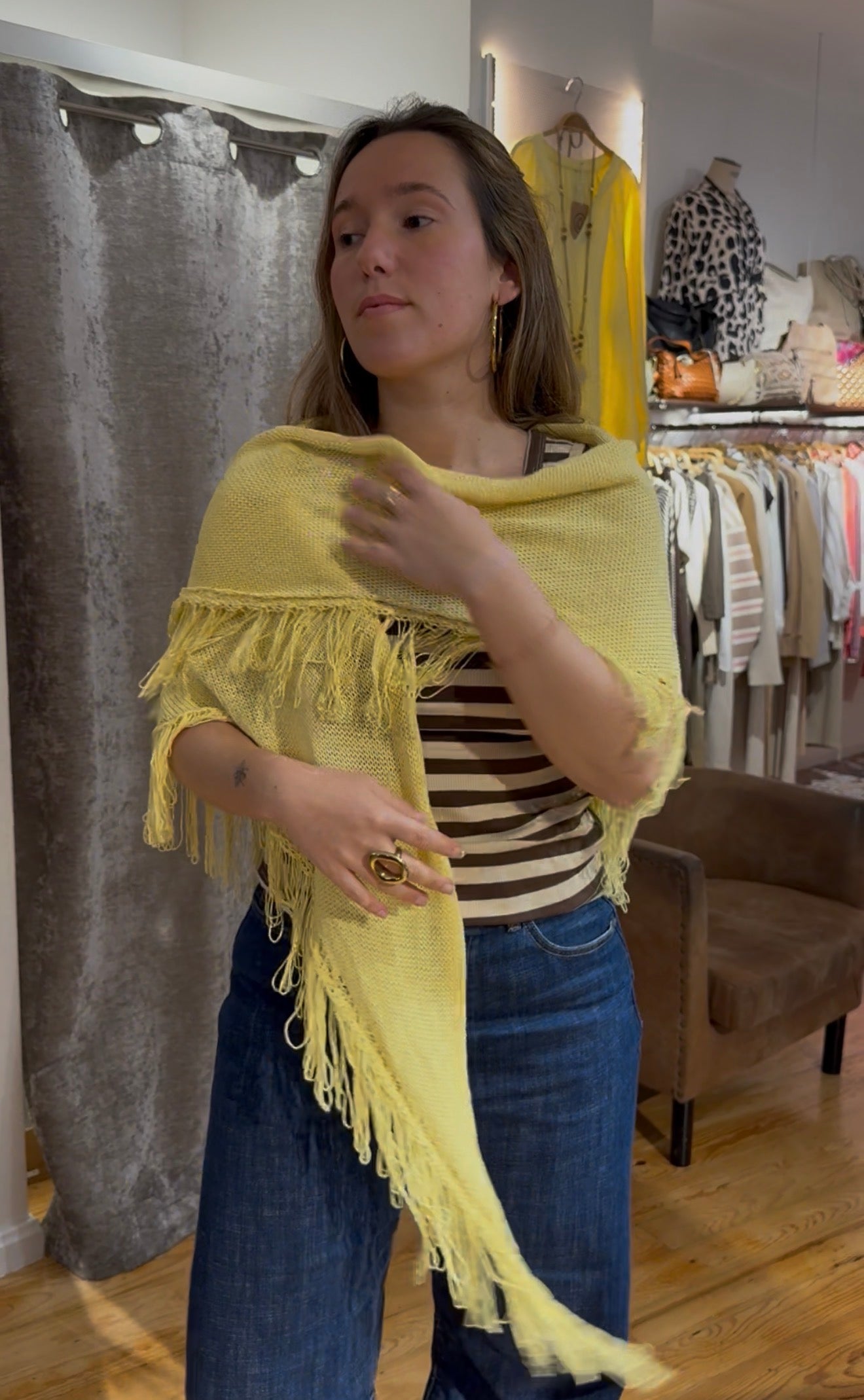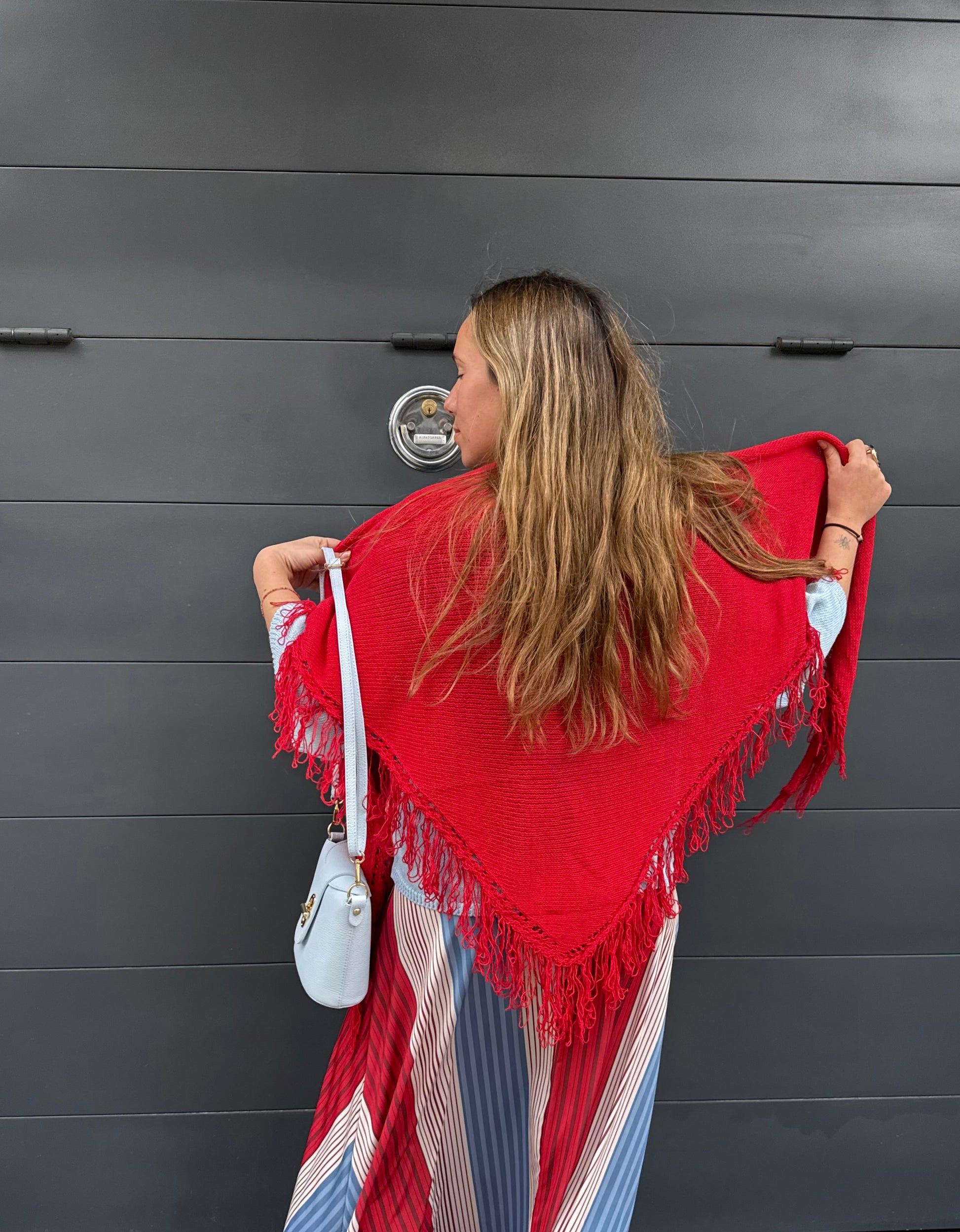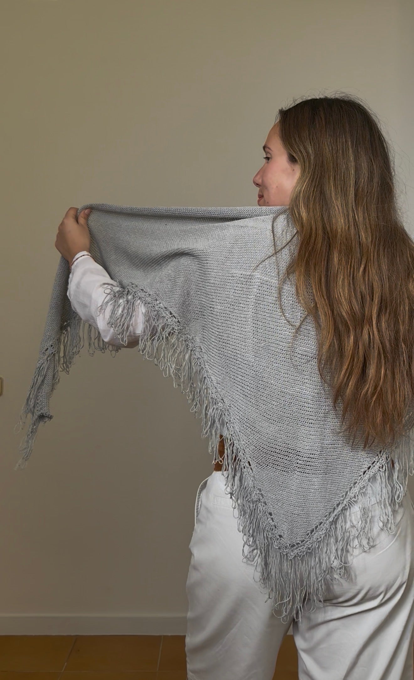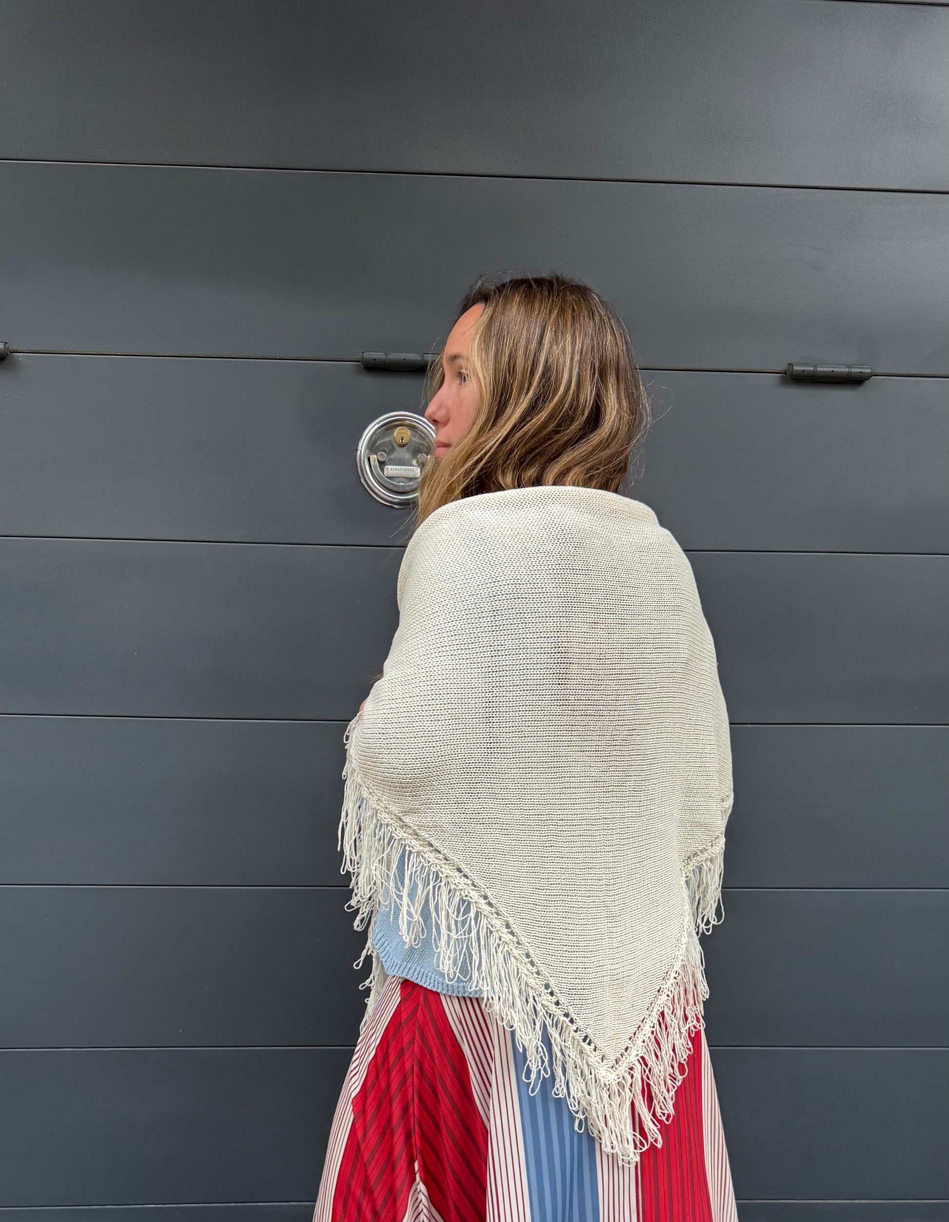 Poncho capa de flecos de algodón.