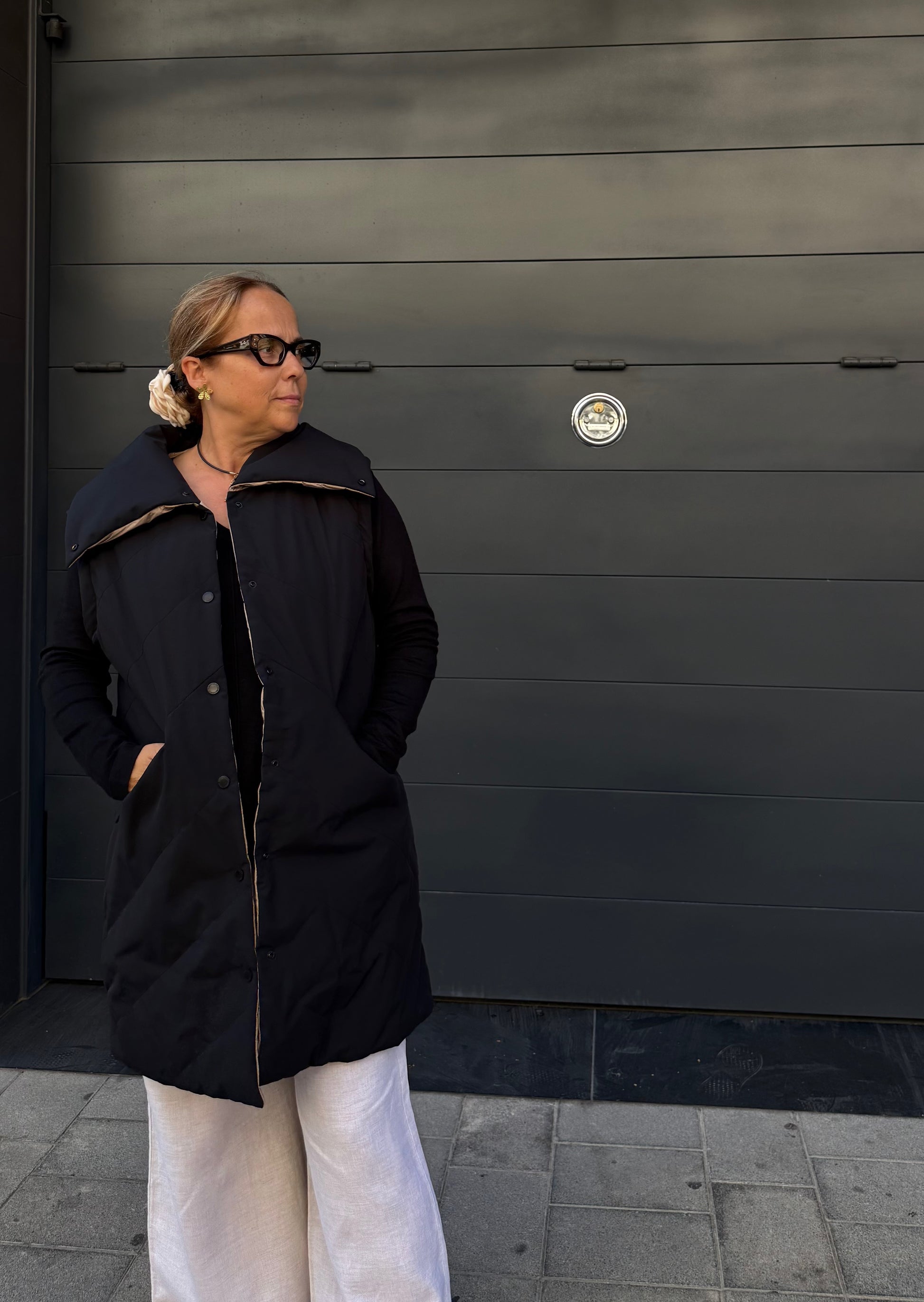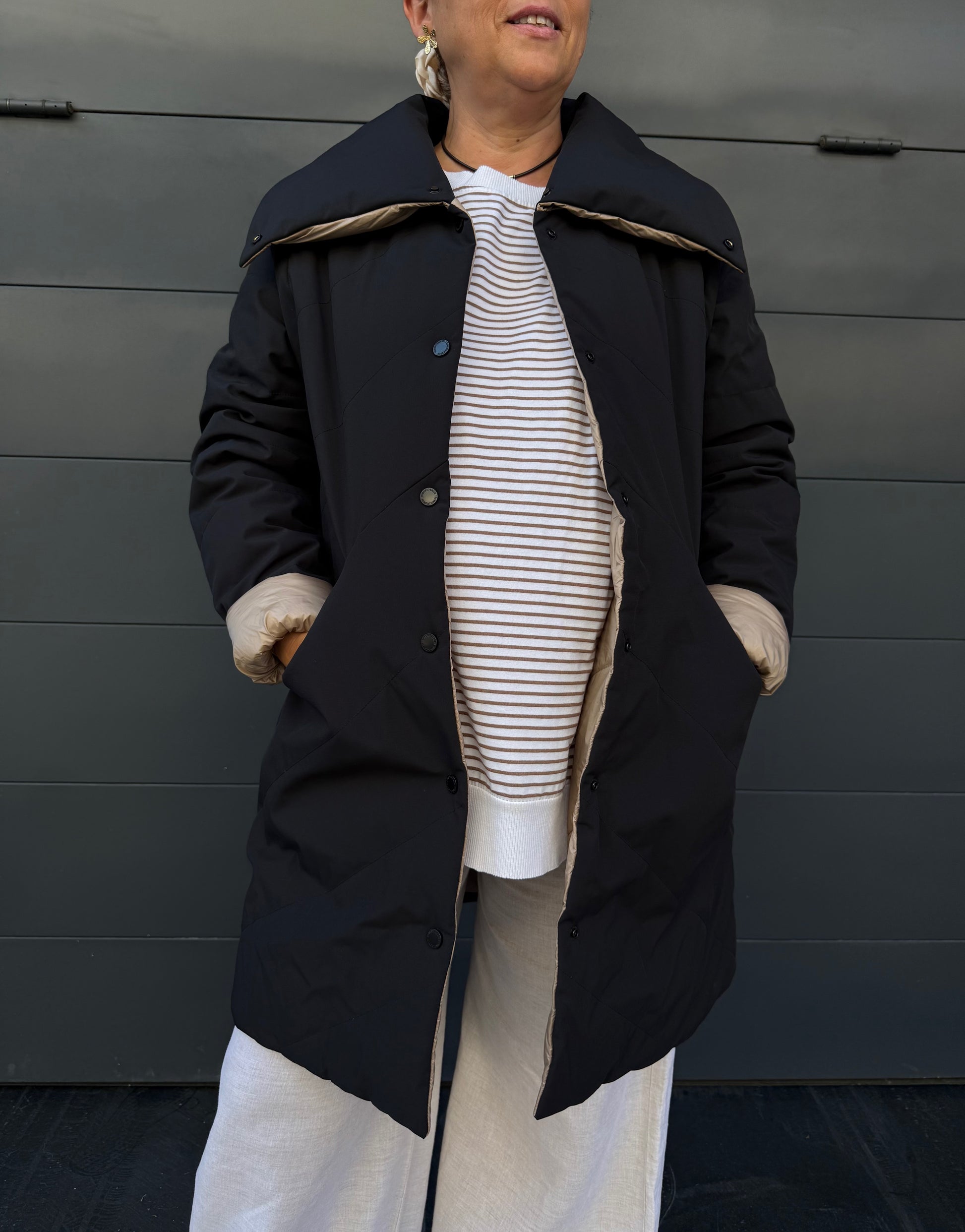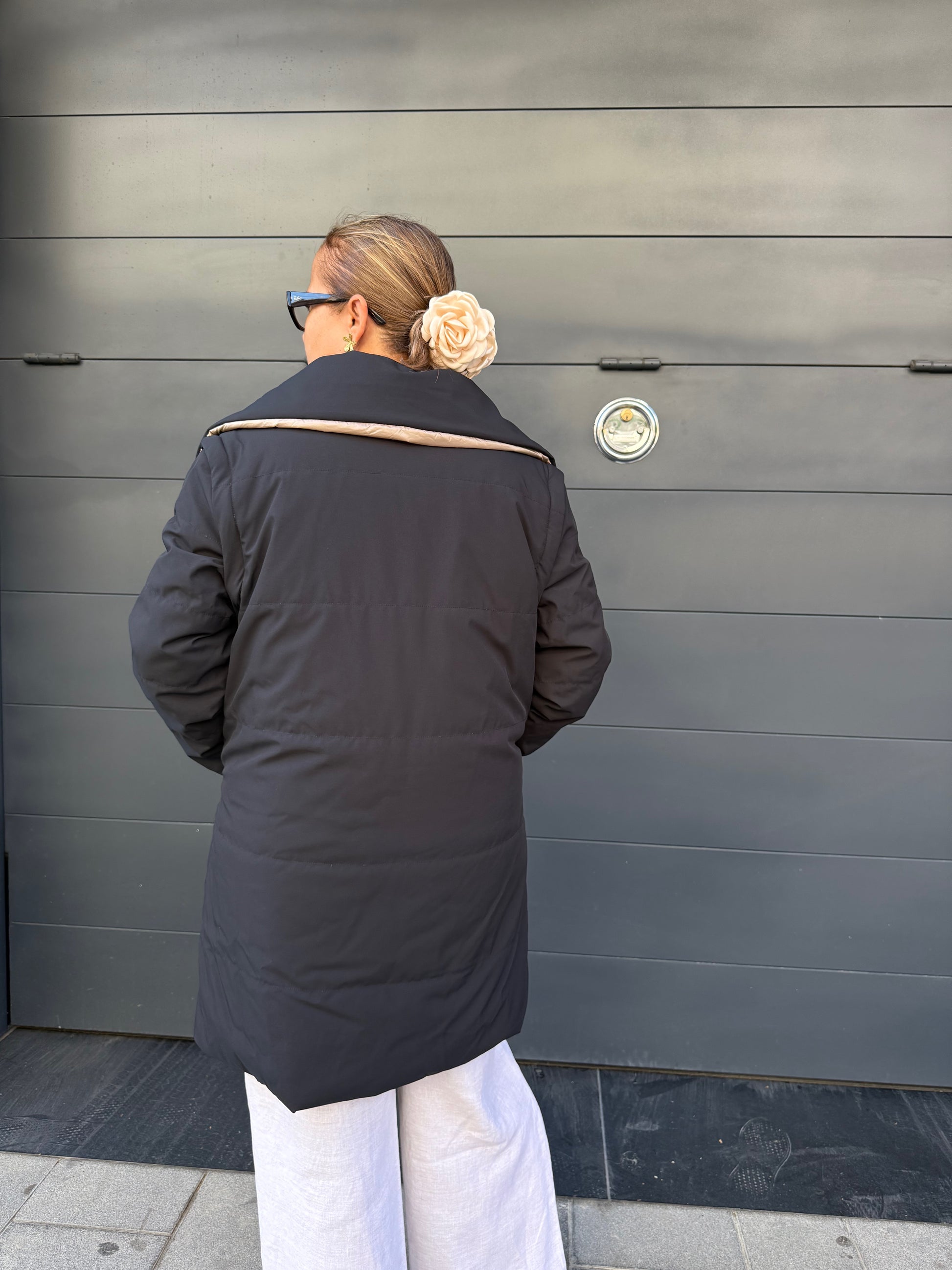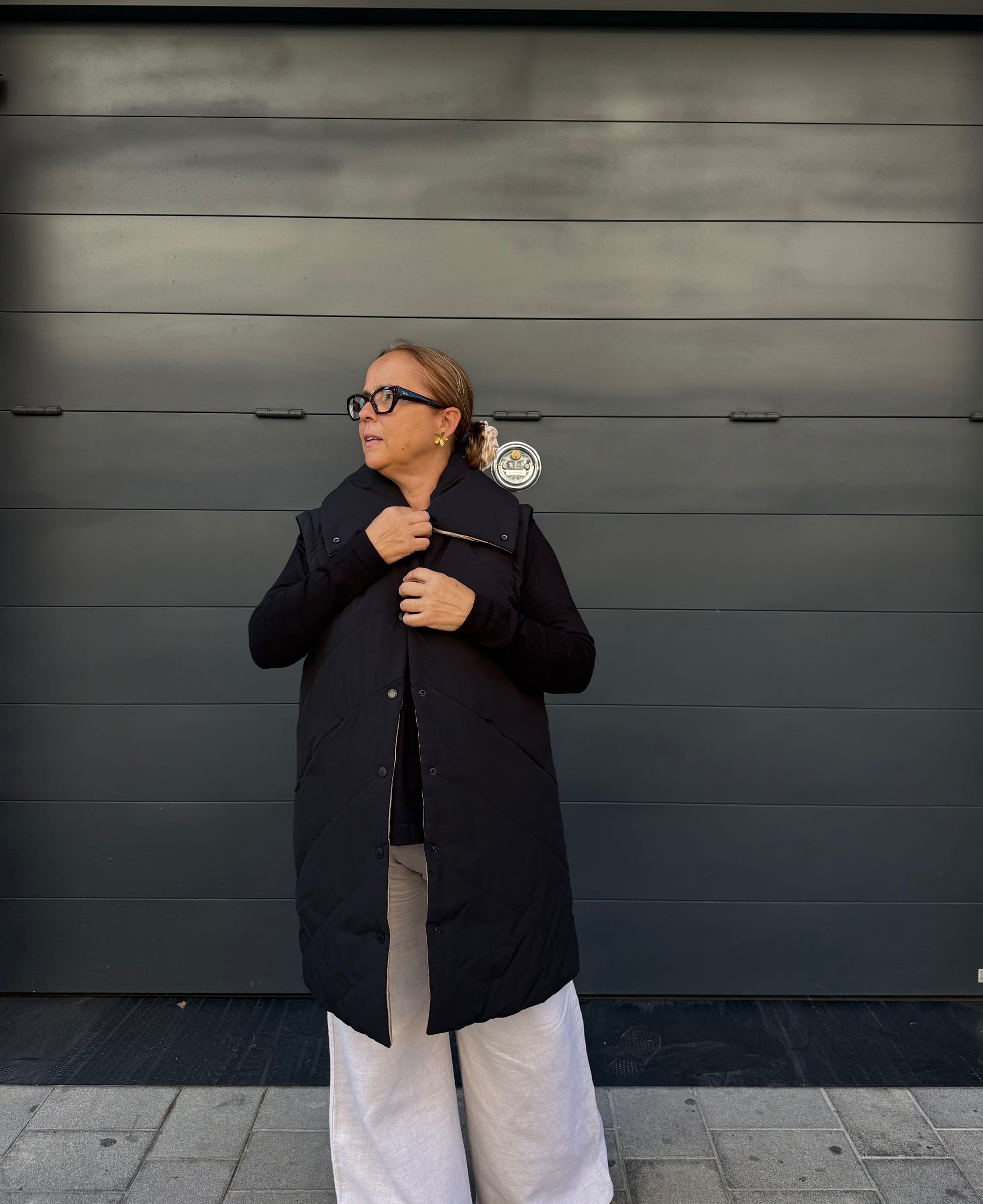 Chaqueta anorak larga por las rodillas 3 posiciones. Negro, beige o sin mangas en forma de chaleco.