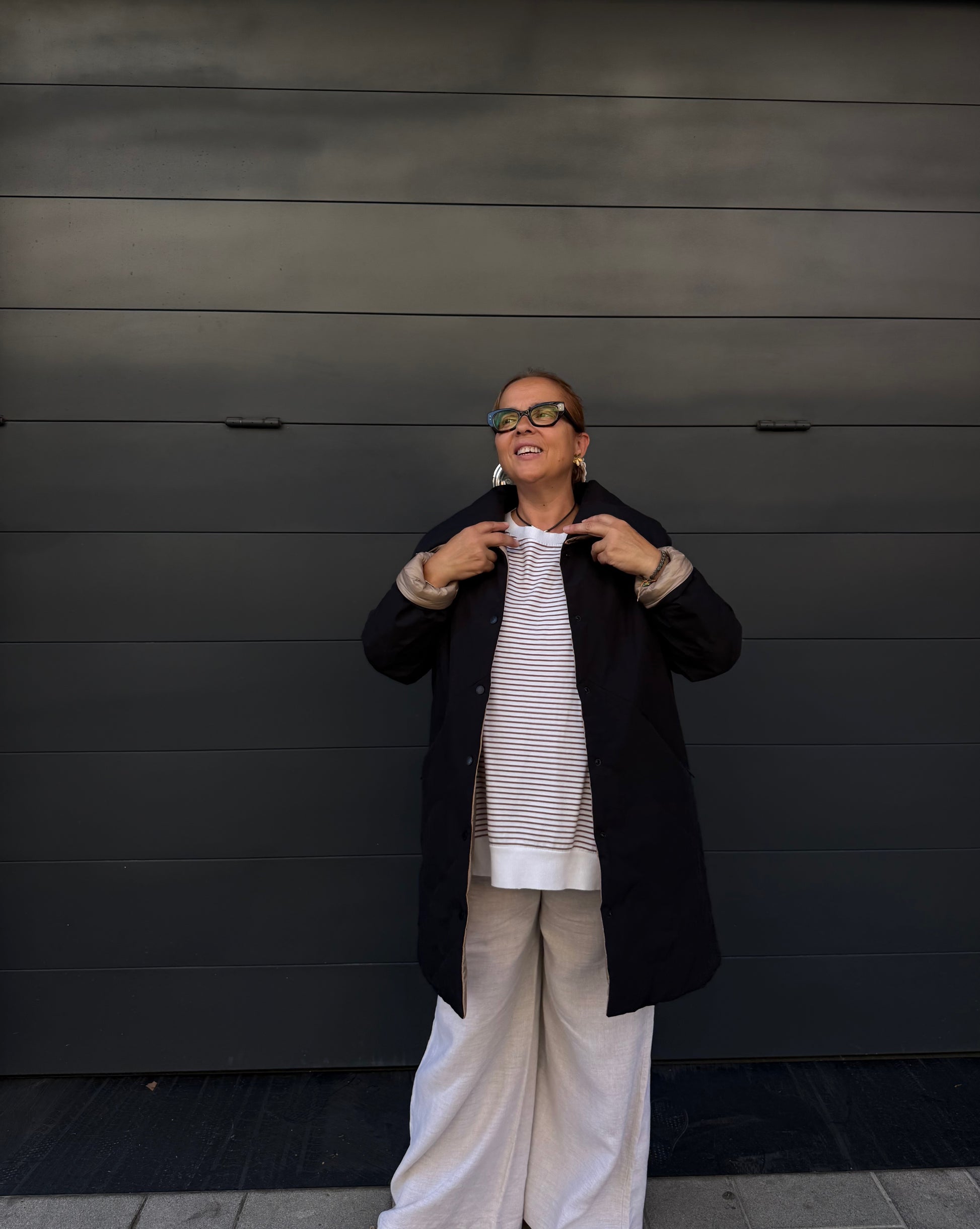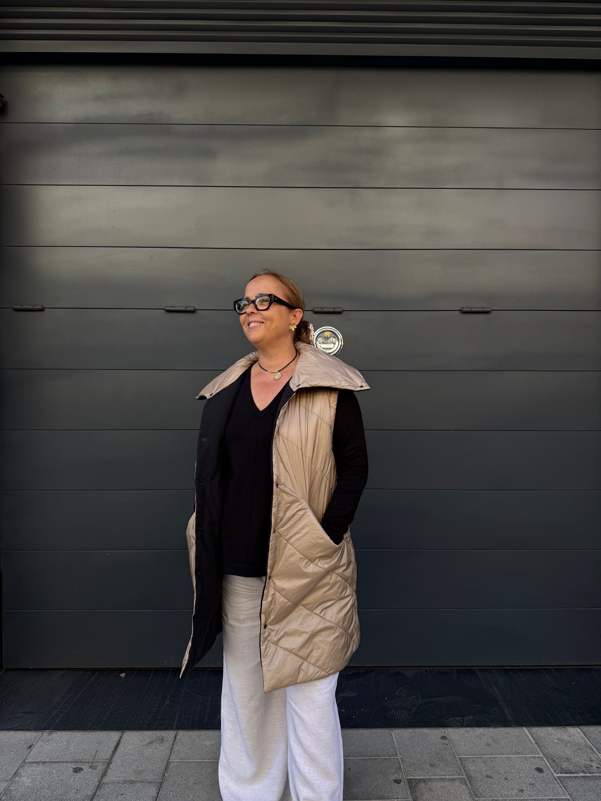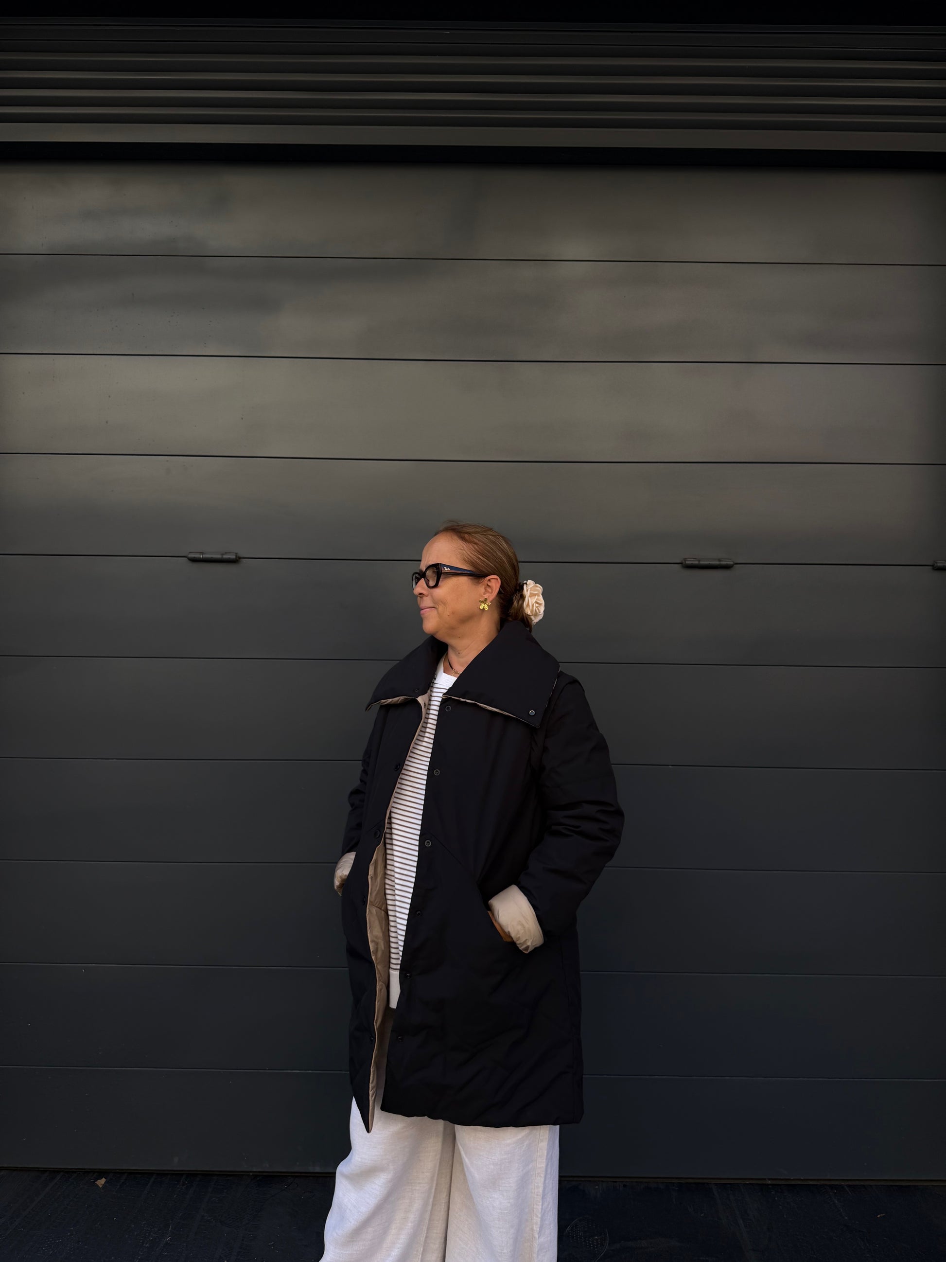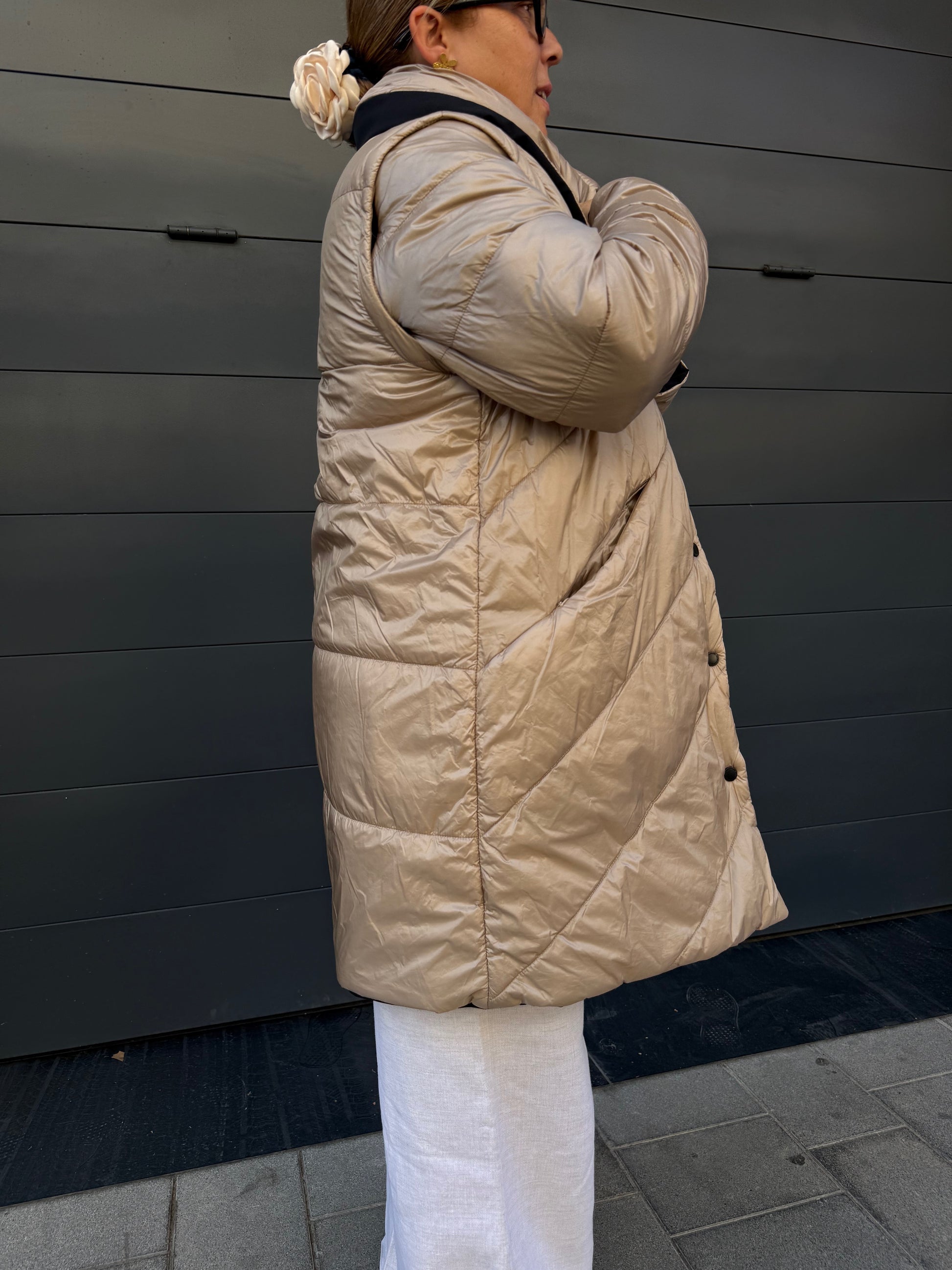 Chaqueta anorak larga por las rodillas 3 posiciones. Negro, beige o sin mangas en forma de chaleco.