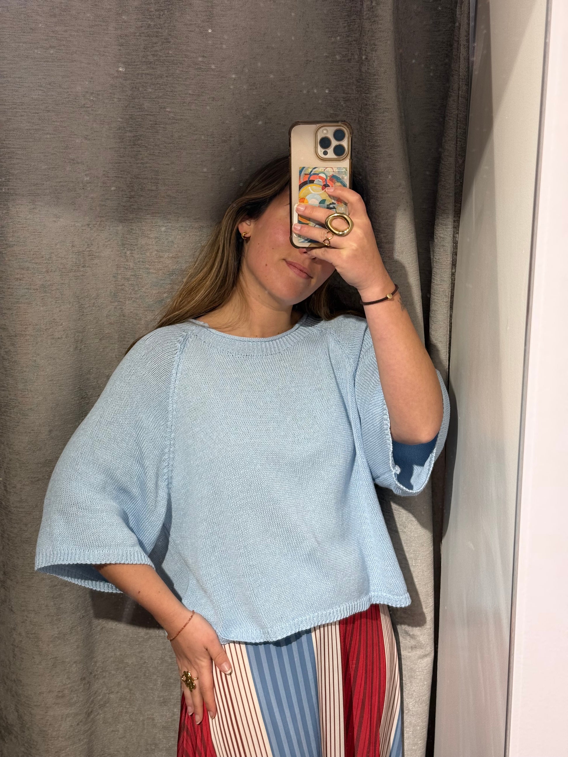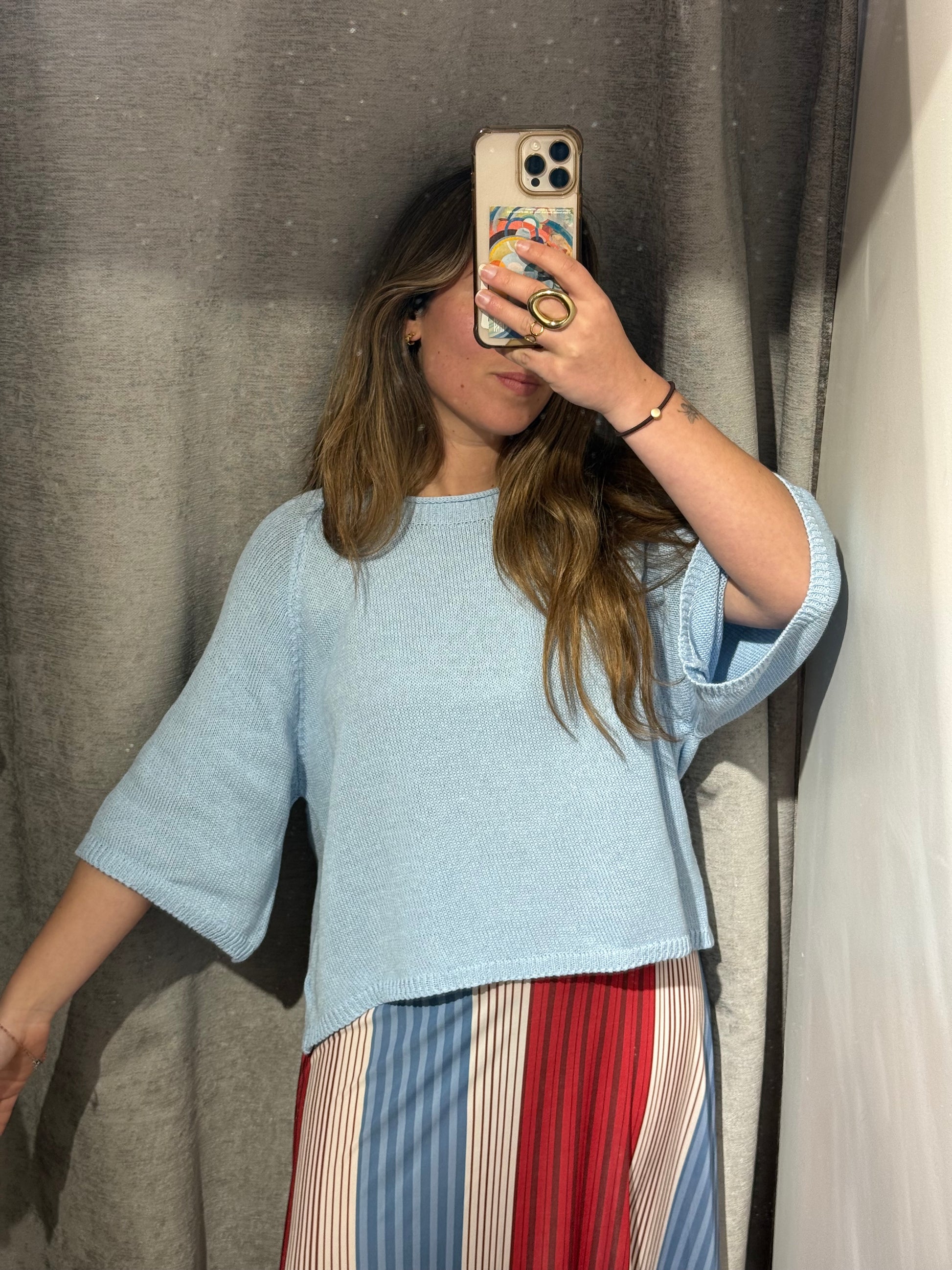 Jersey cuadrado con manga ancha 3/4 y cuello redondo.