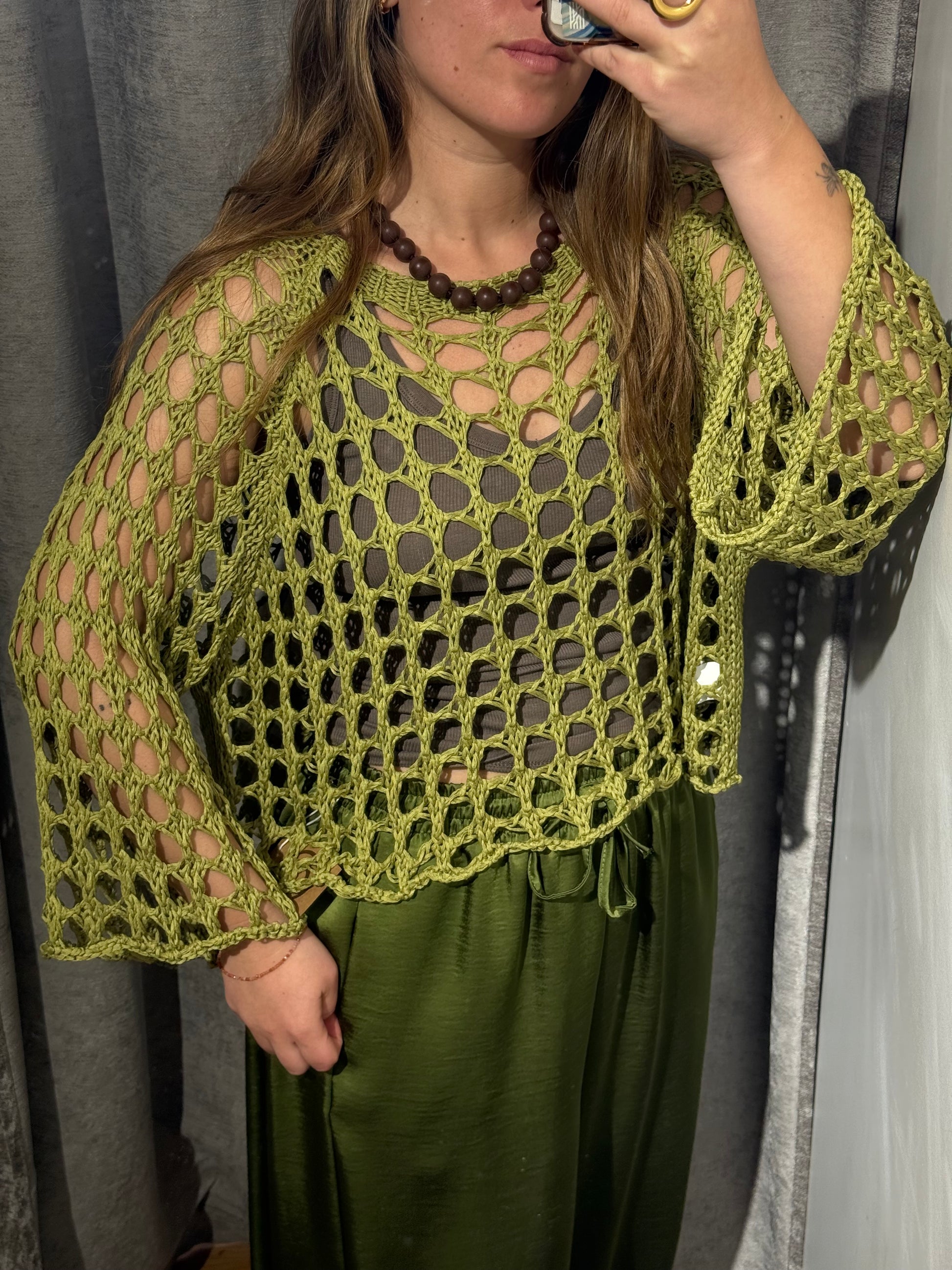 Jersey red corto calado en color verde.