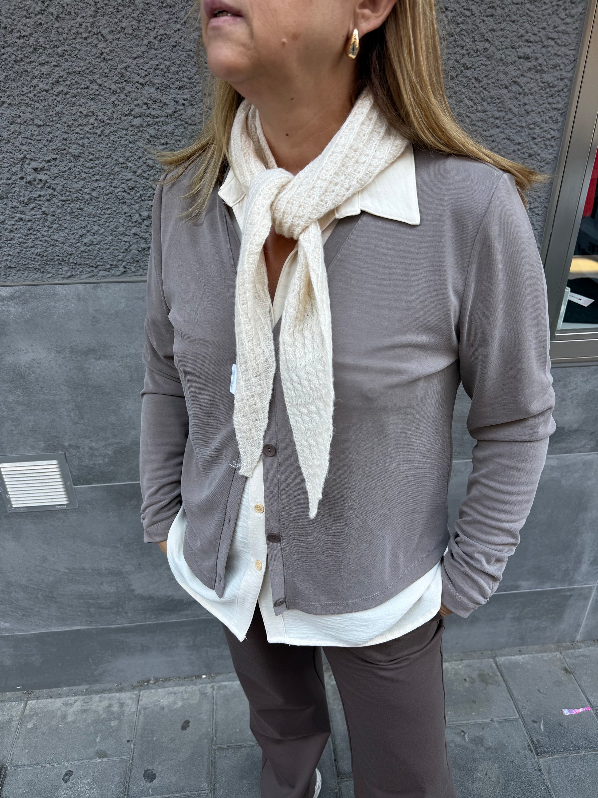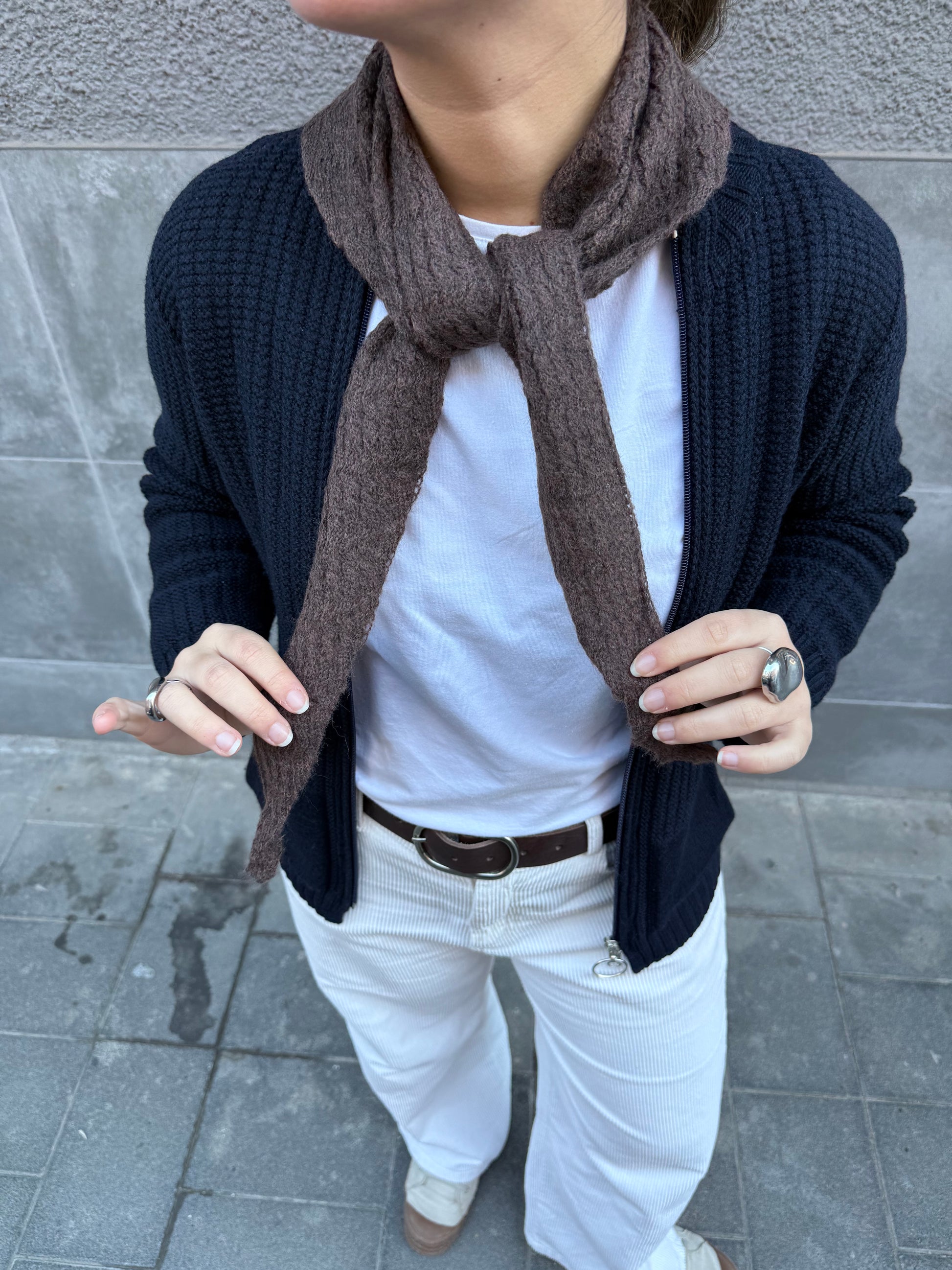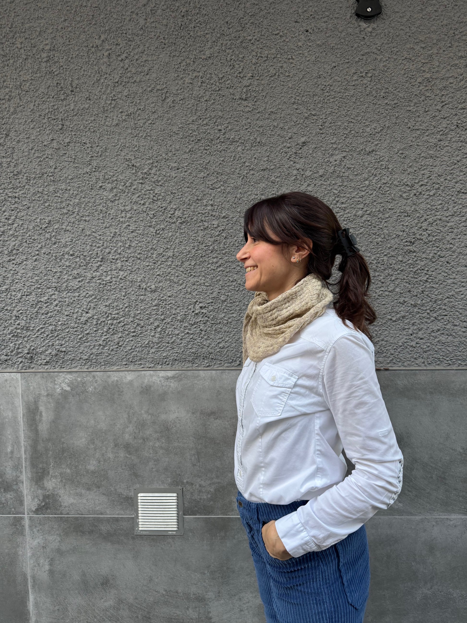 Bandana de punto en forma triangular, en diferentes tejidos y colores. Para cuello o pelo, multi posiciones.