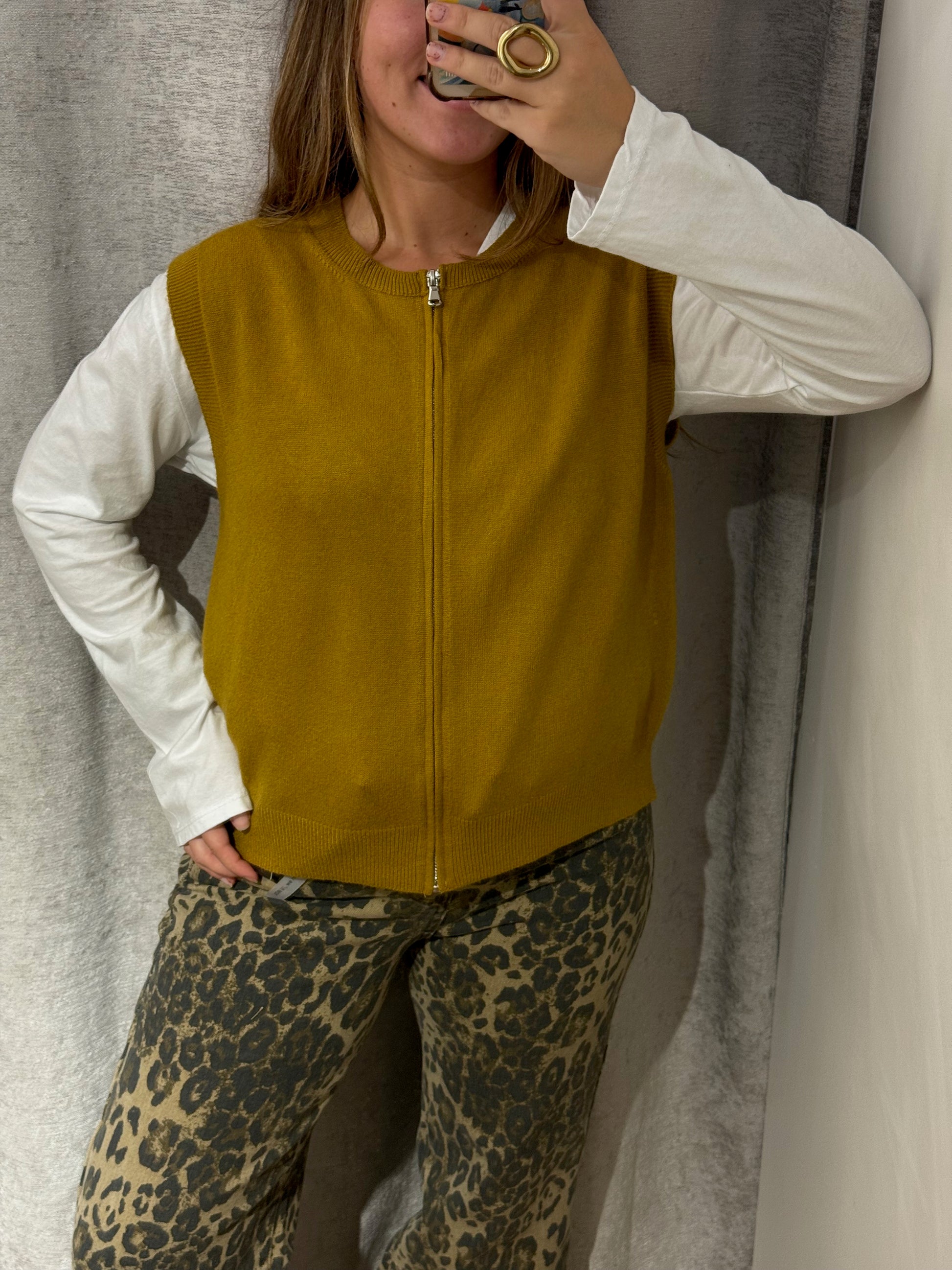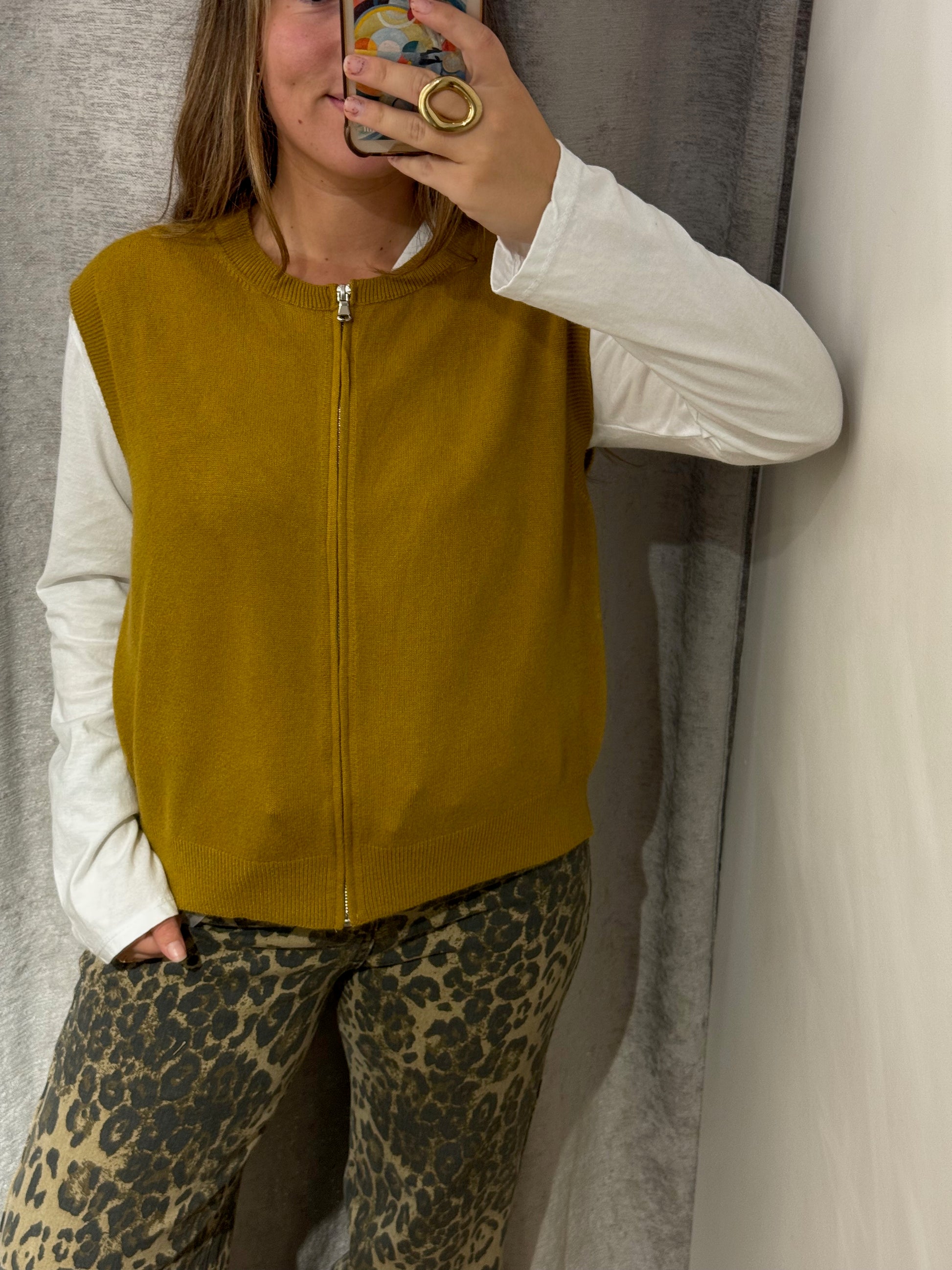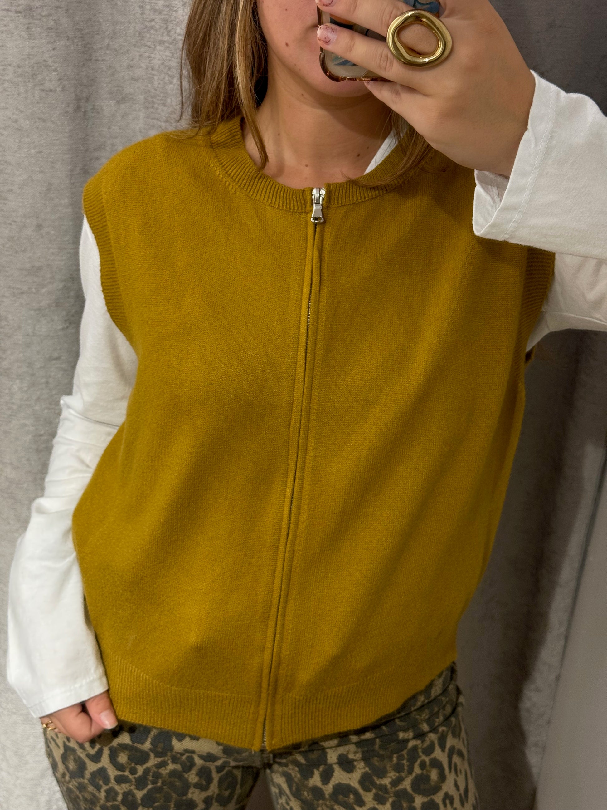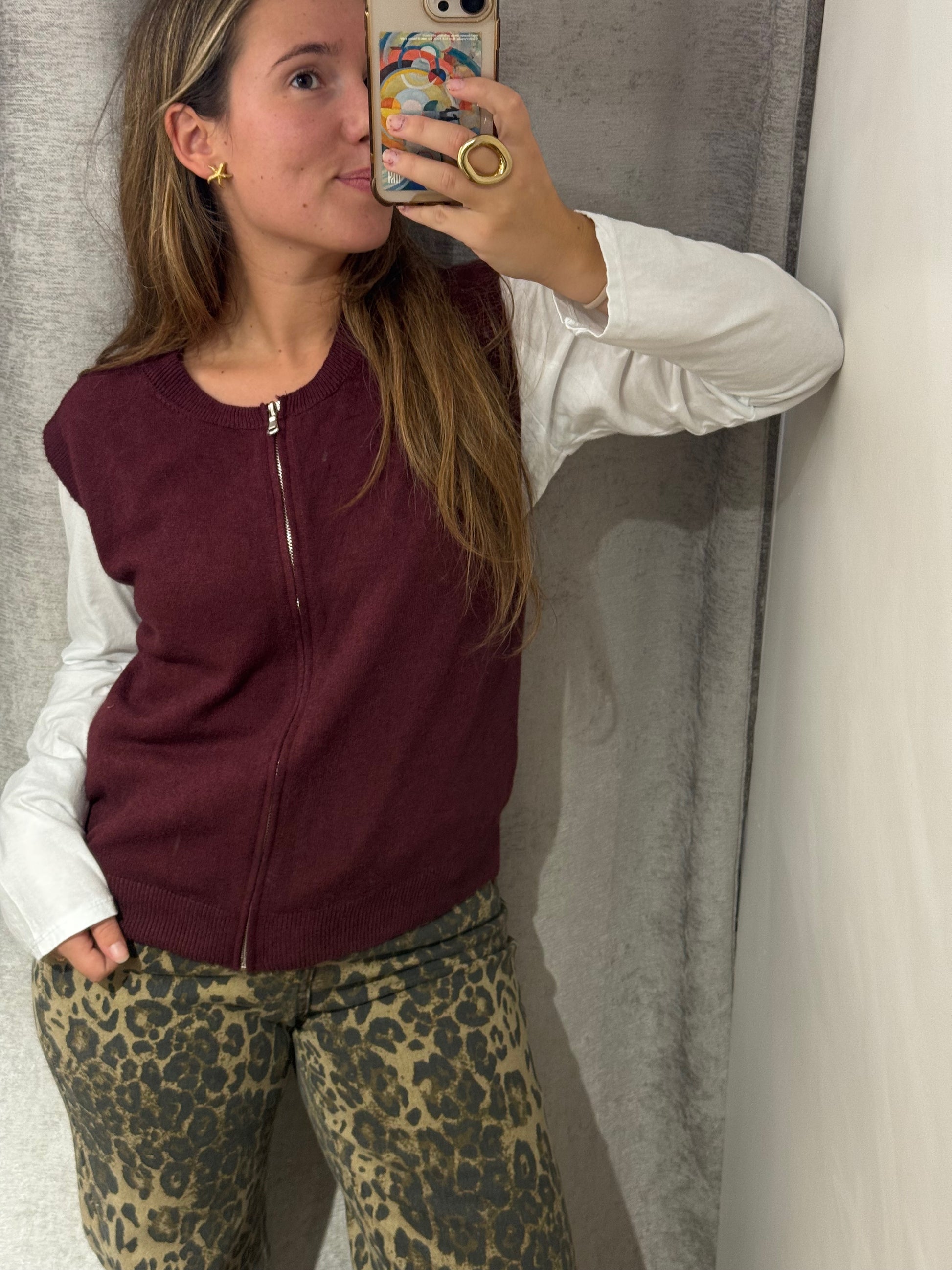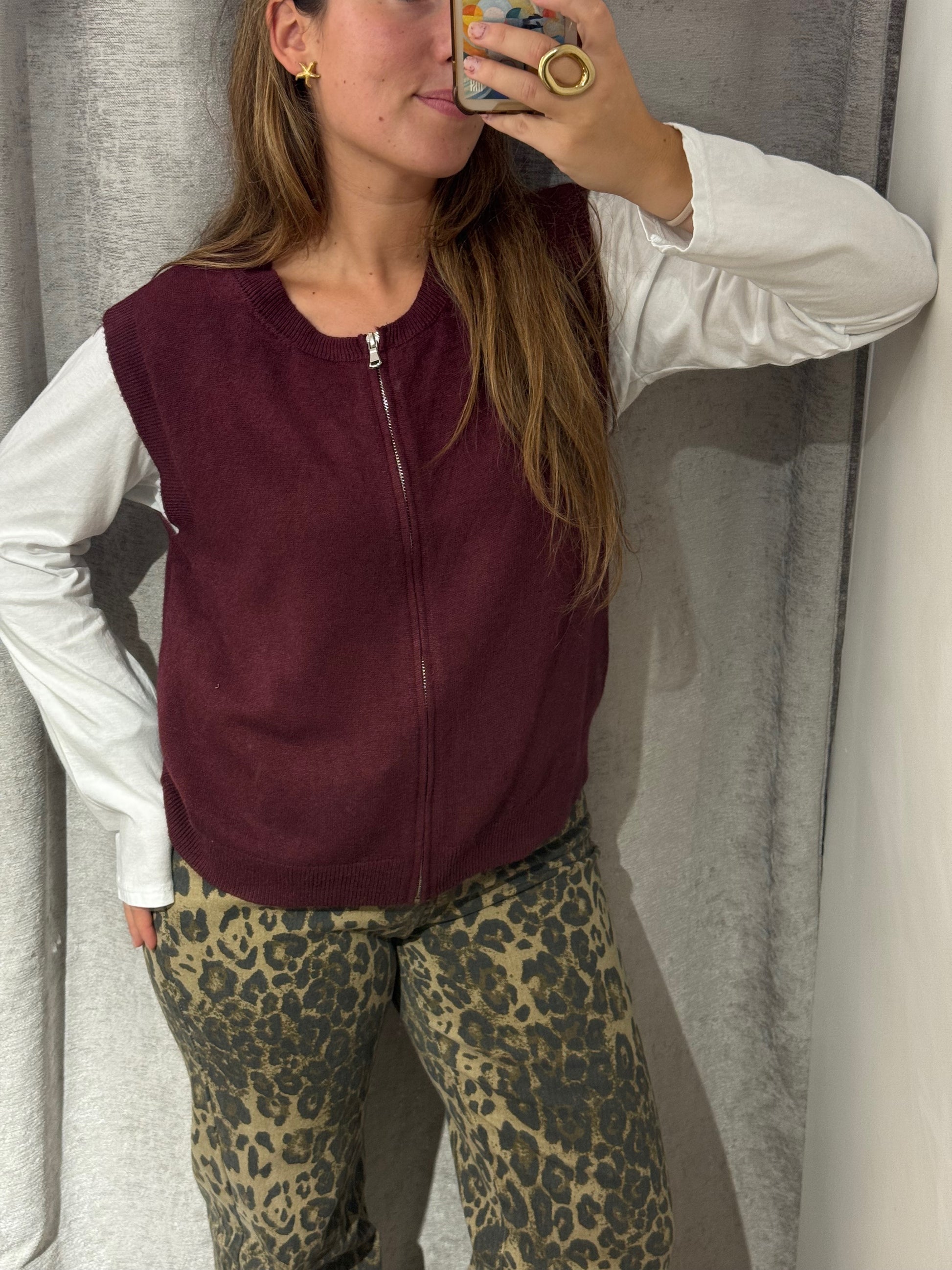 Chaleco tipo jersey con cremallera, en diferentes colores.
