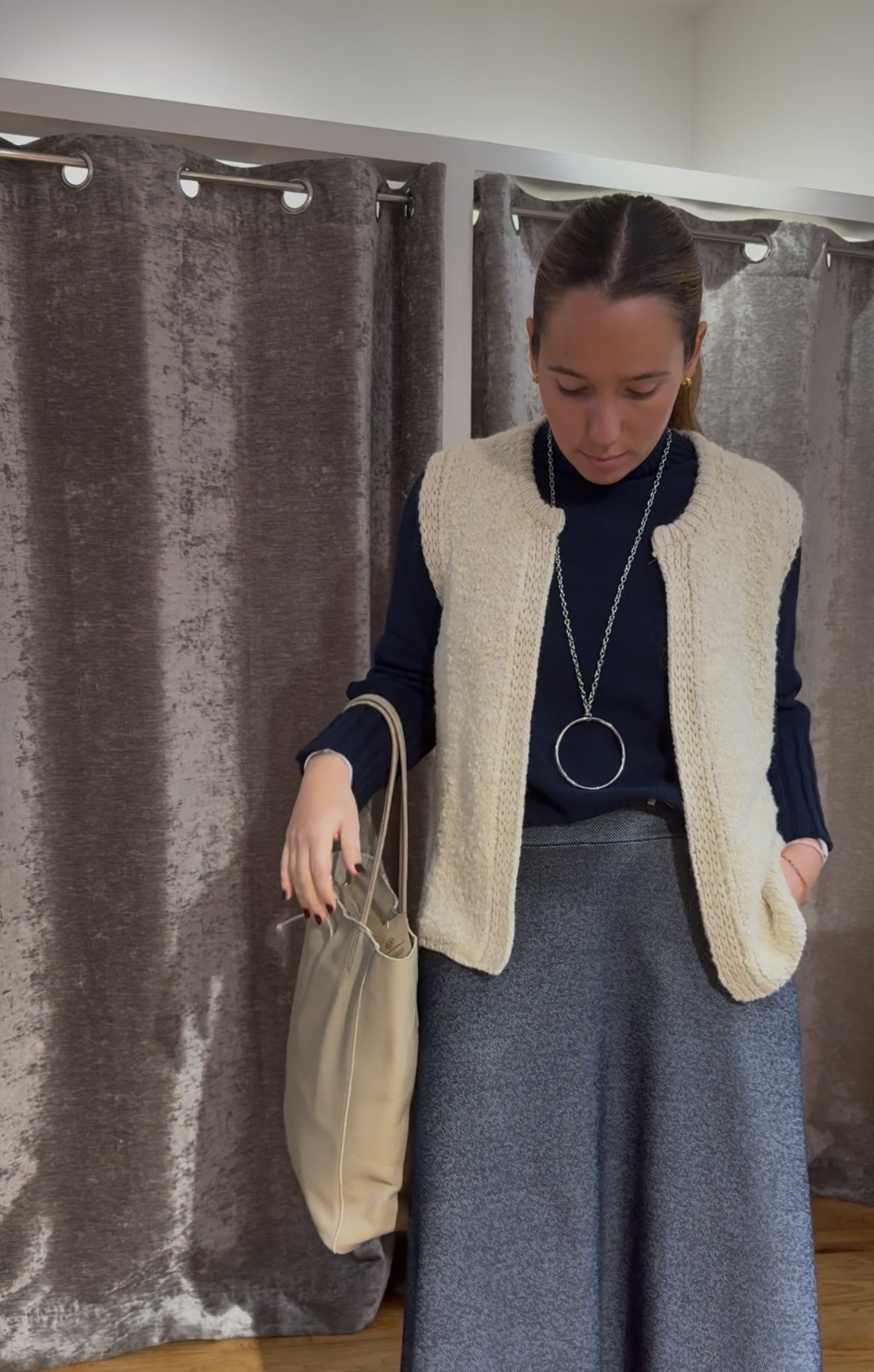 Collar cadena largo con un aro más grande en el centro. De acero inoxidable.
