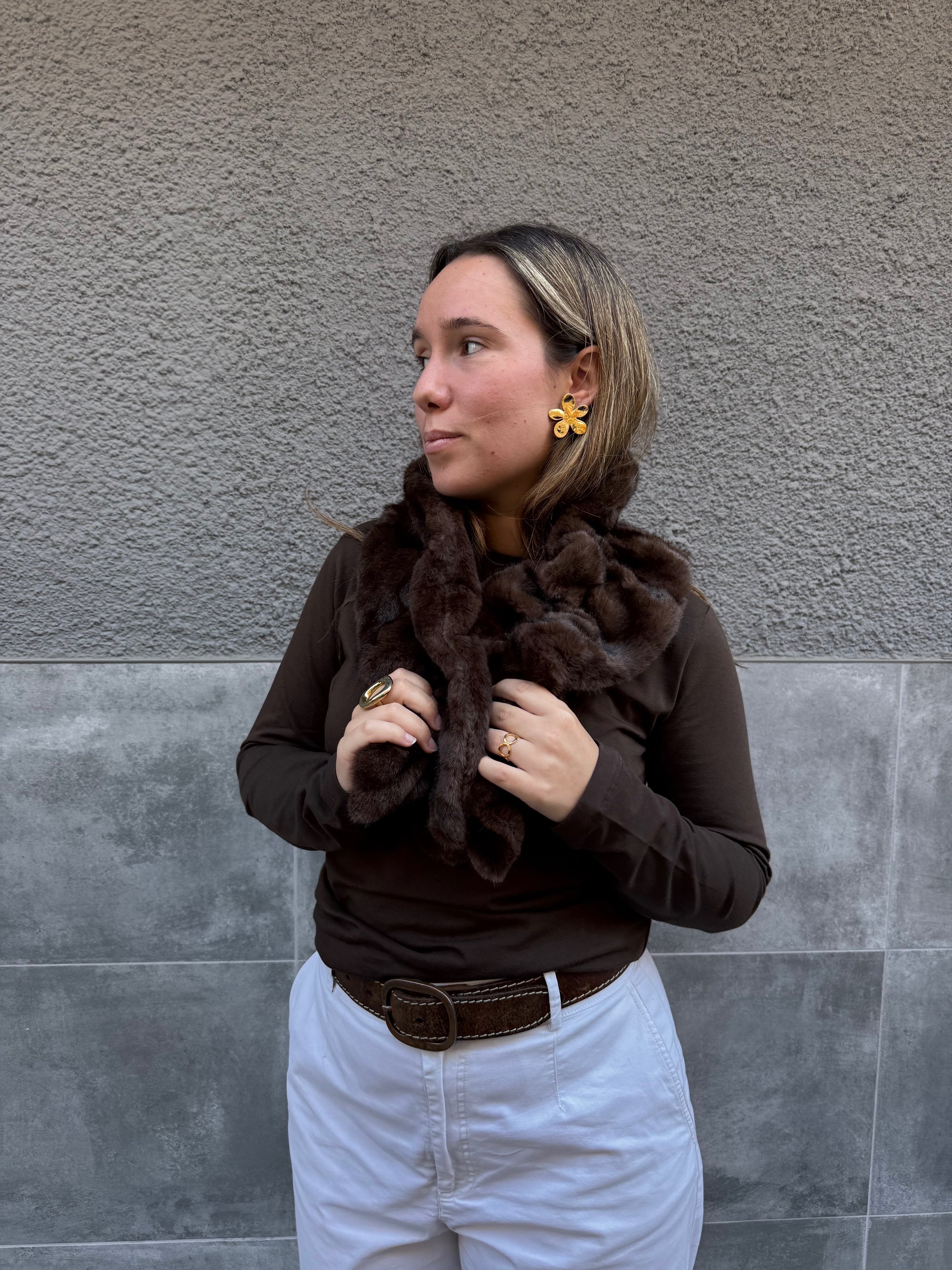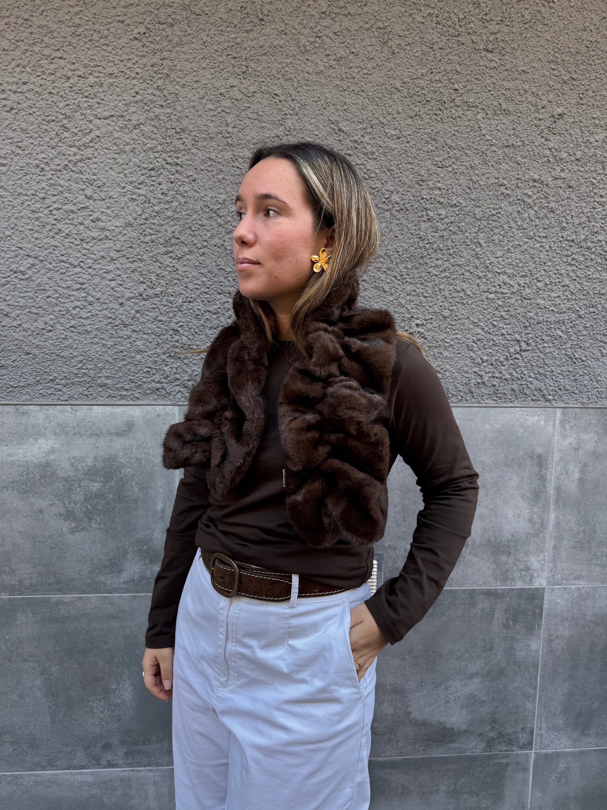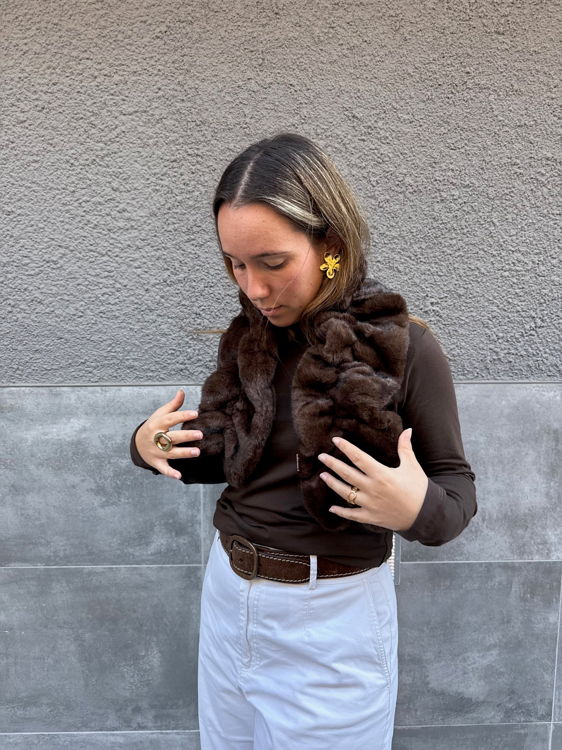 Cuello de pelo sintético, para llevar abierto o cerrado.