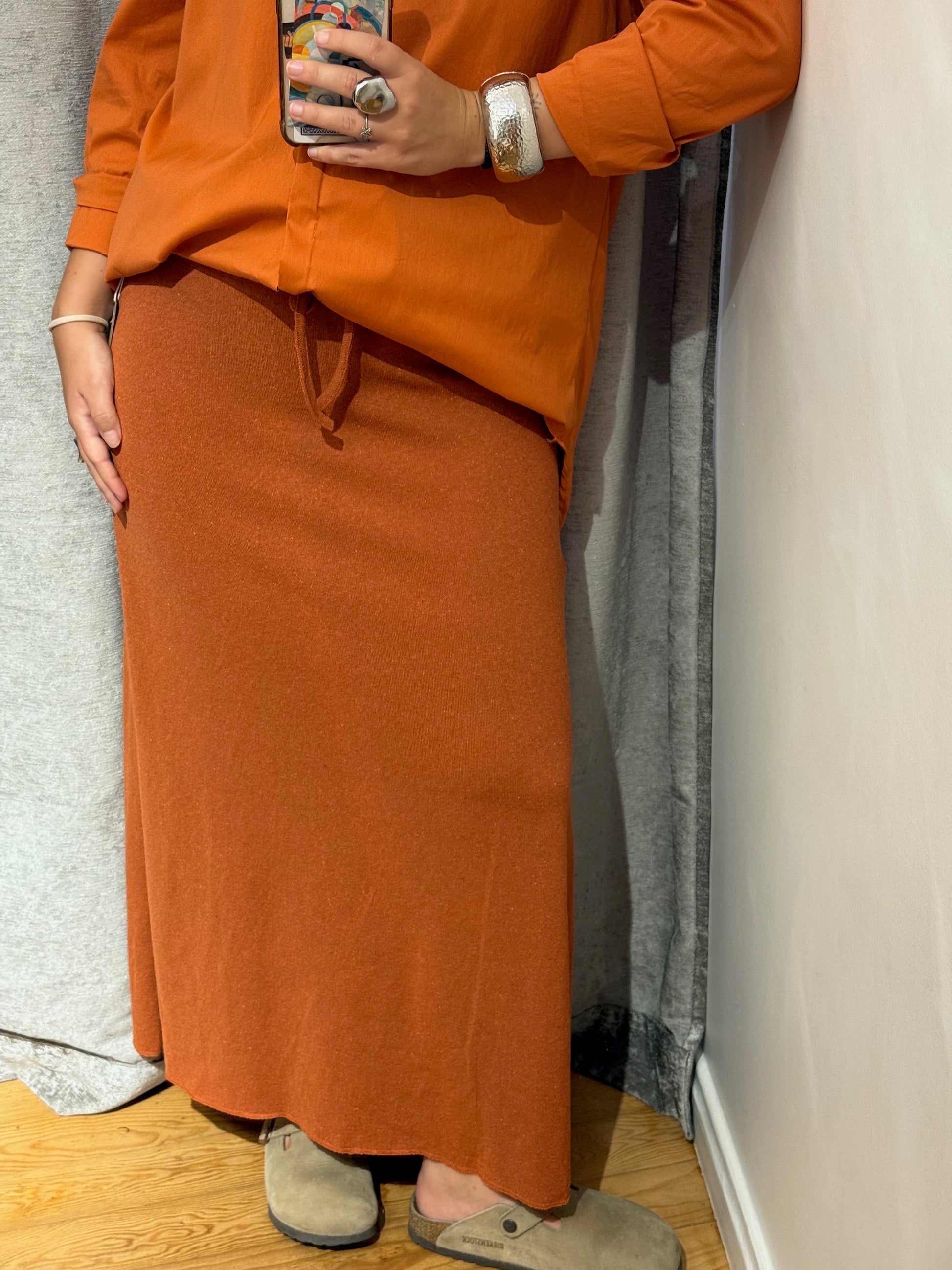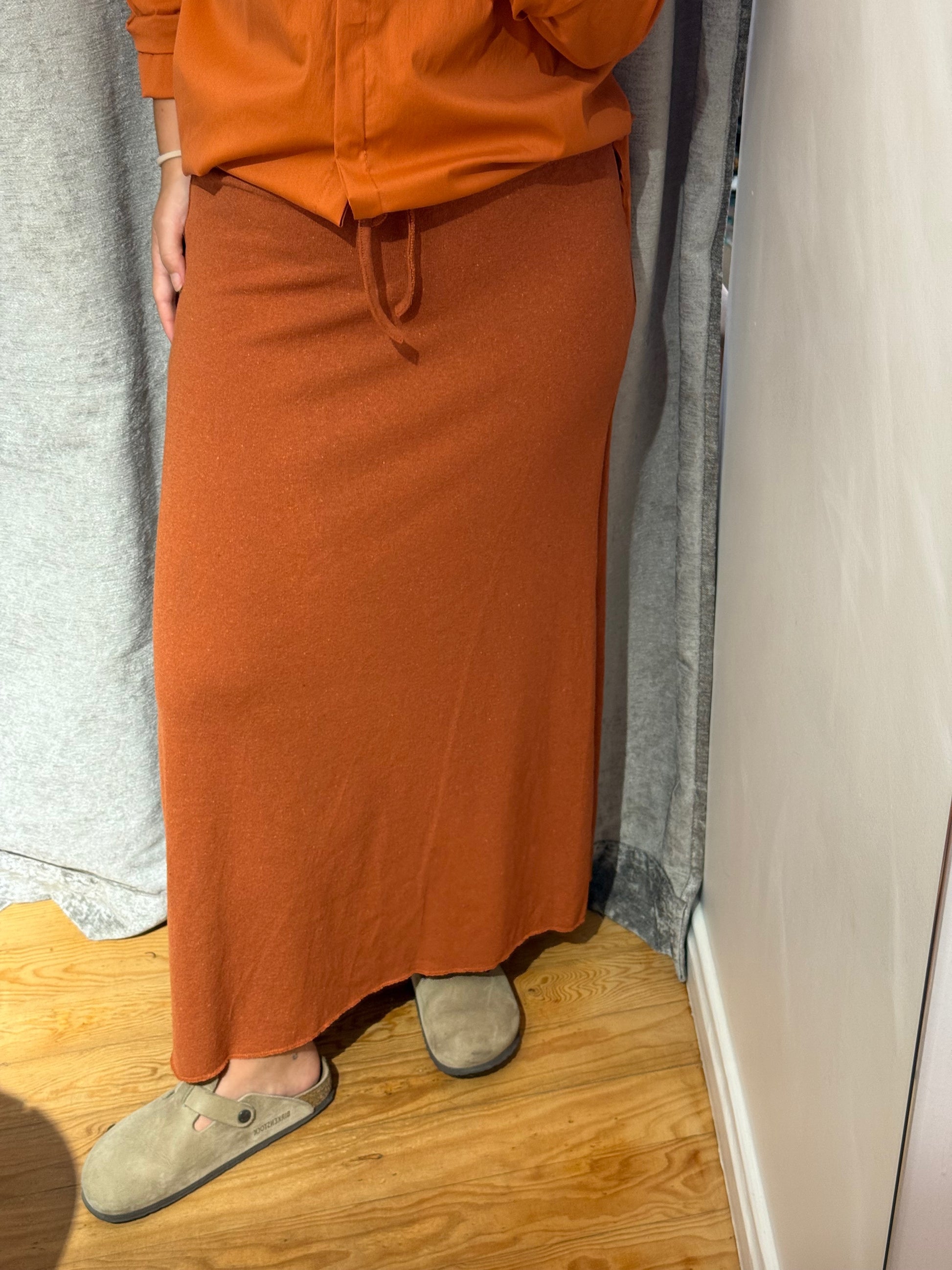 Falda recta midi con aperturas en los laterales. Tela adaptable para diferentes talals.
