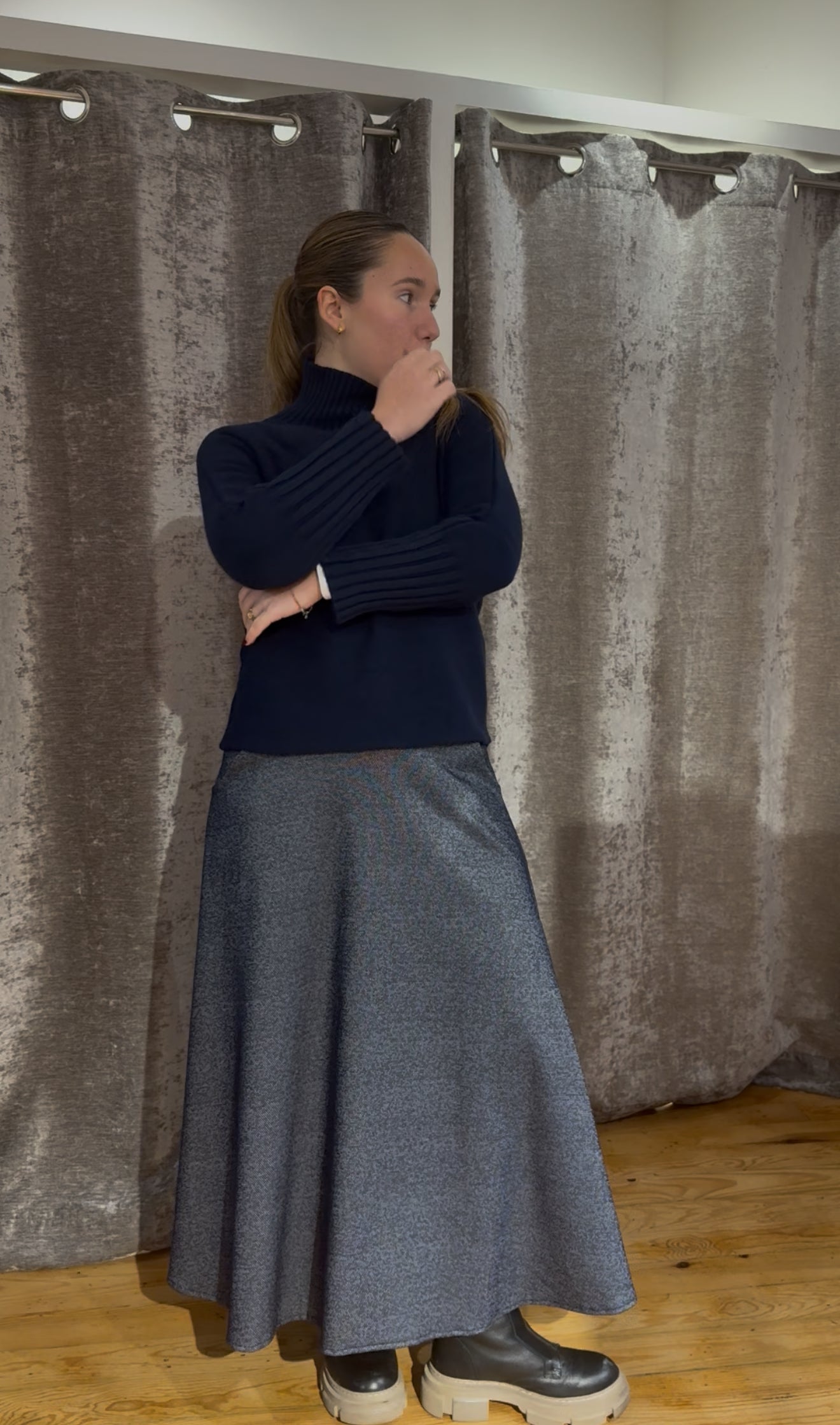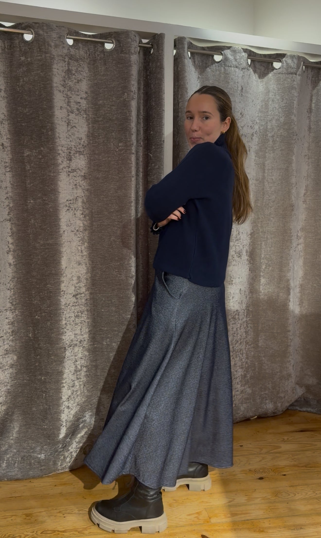 Falda midi con goma en la cintura, jaspeado efecto tejano.