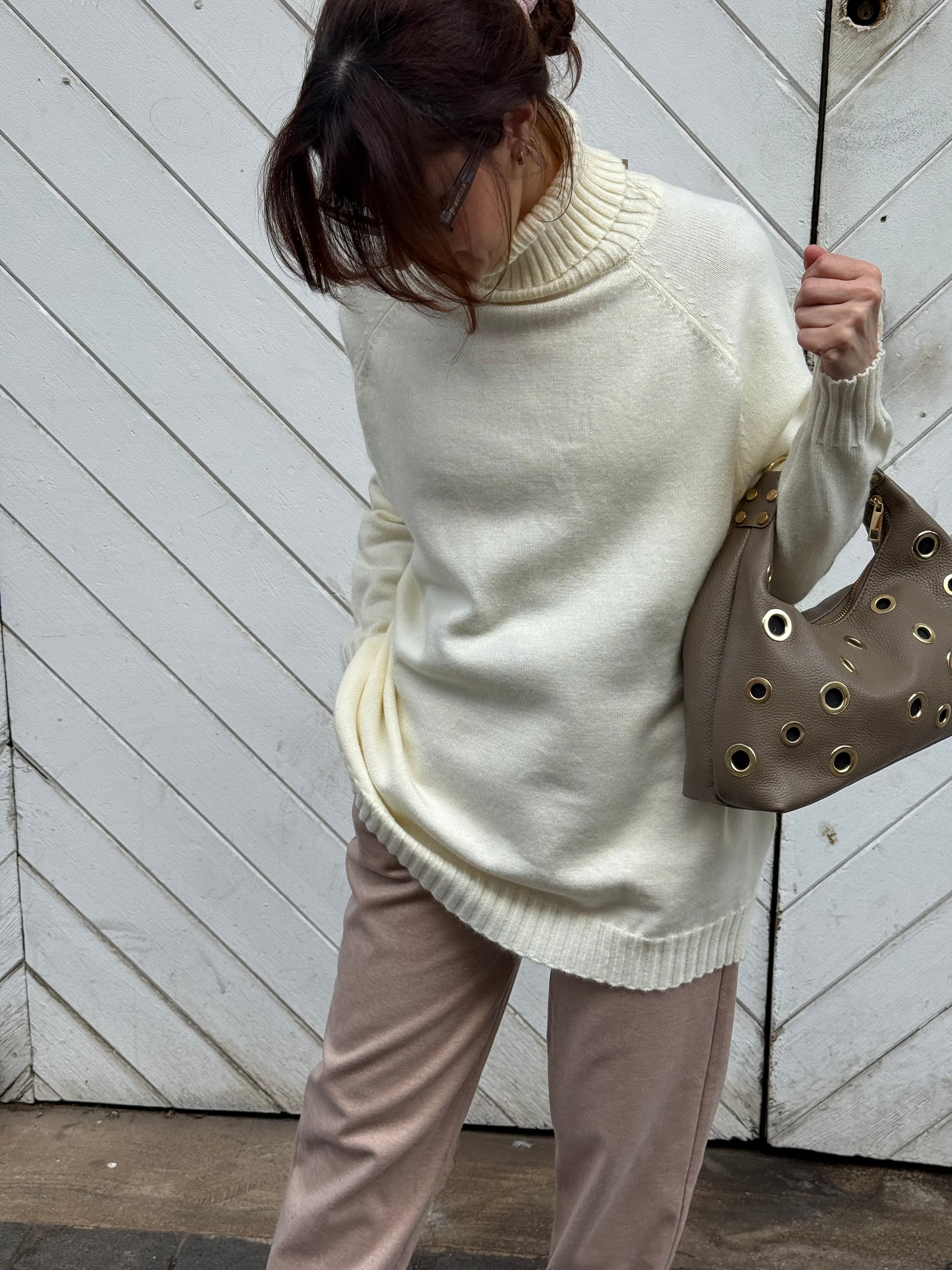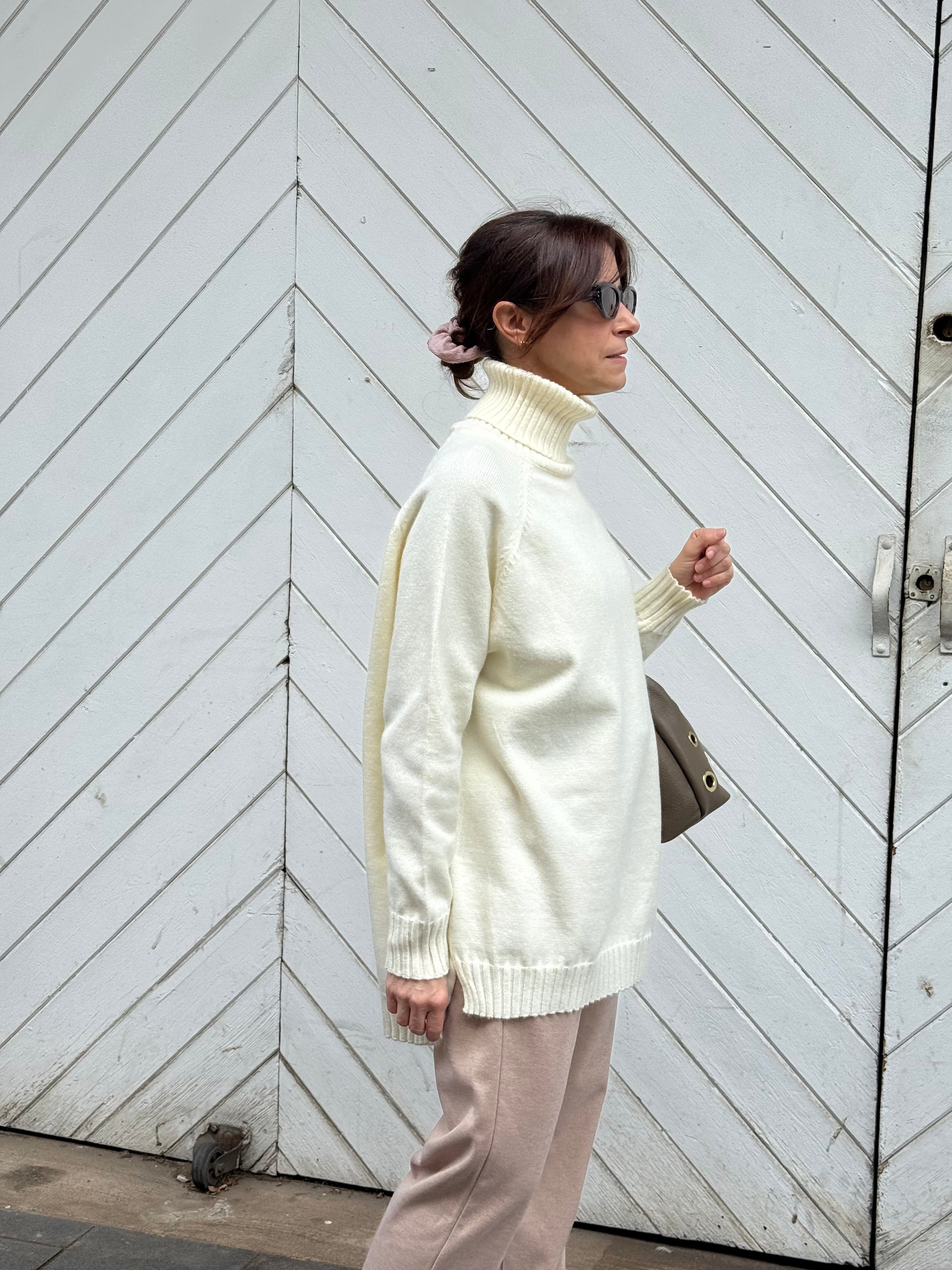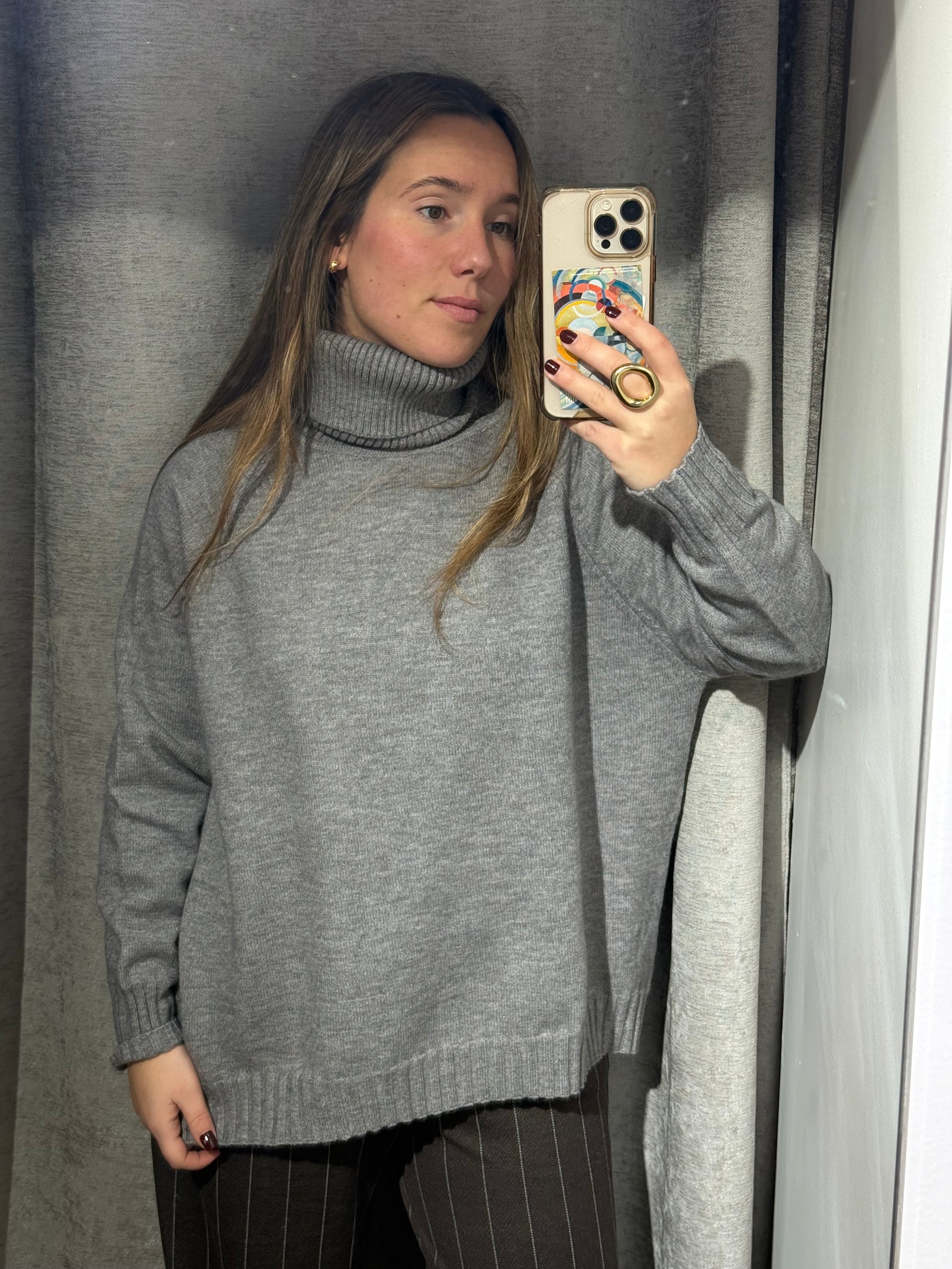 Jersey largo de cuello alto, más corto por delante que por detrás.