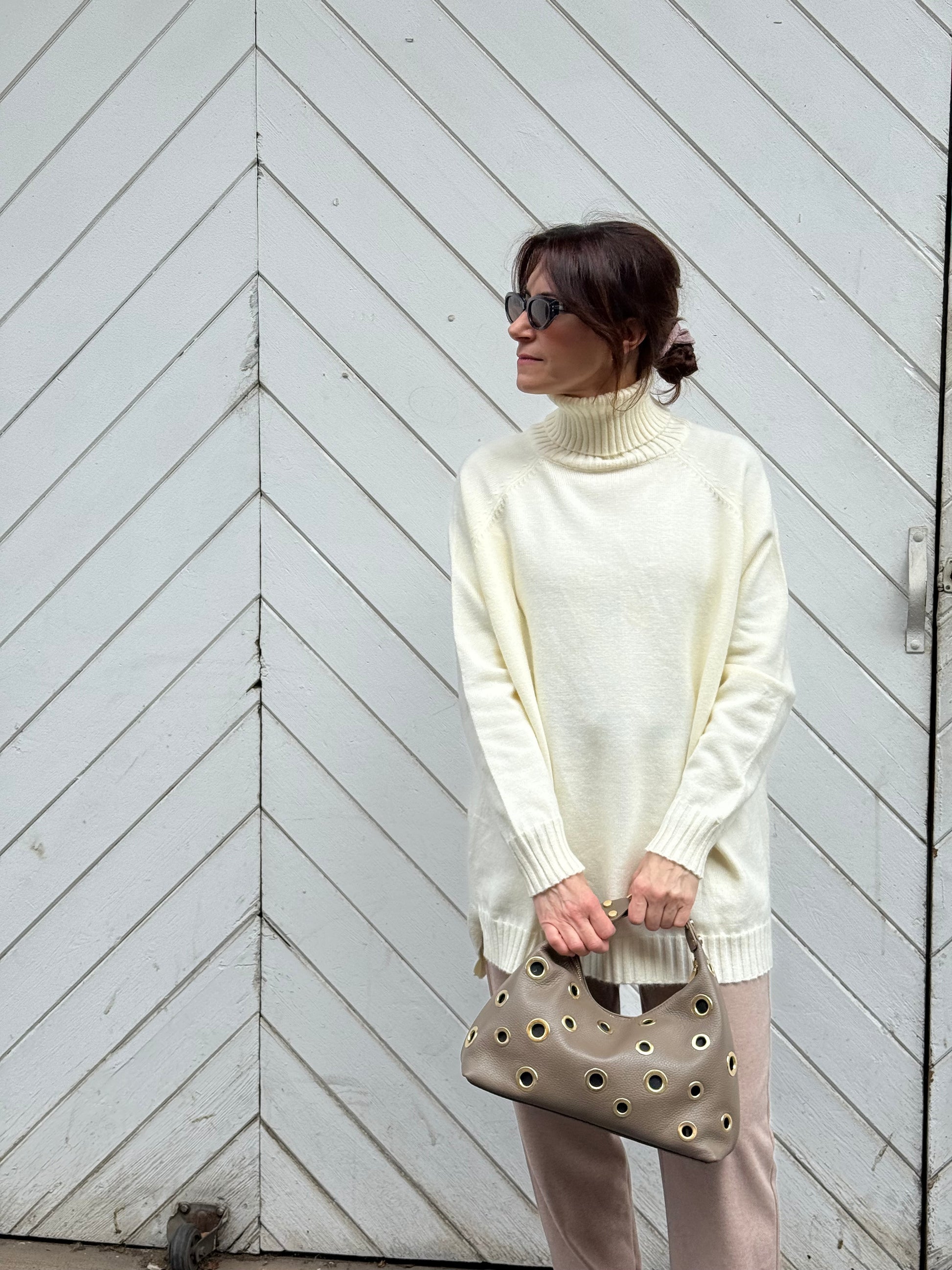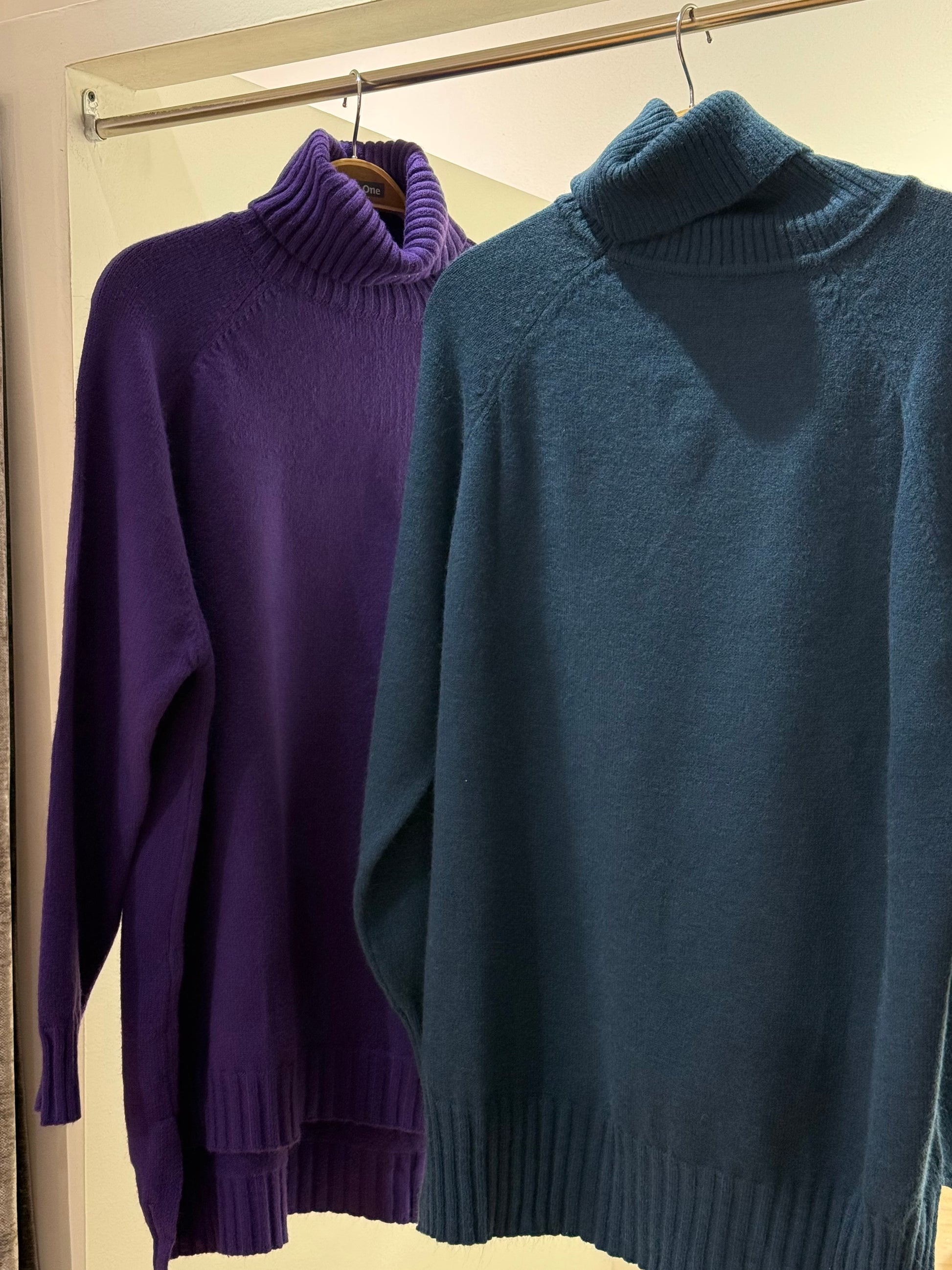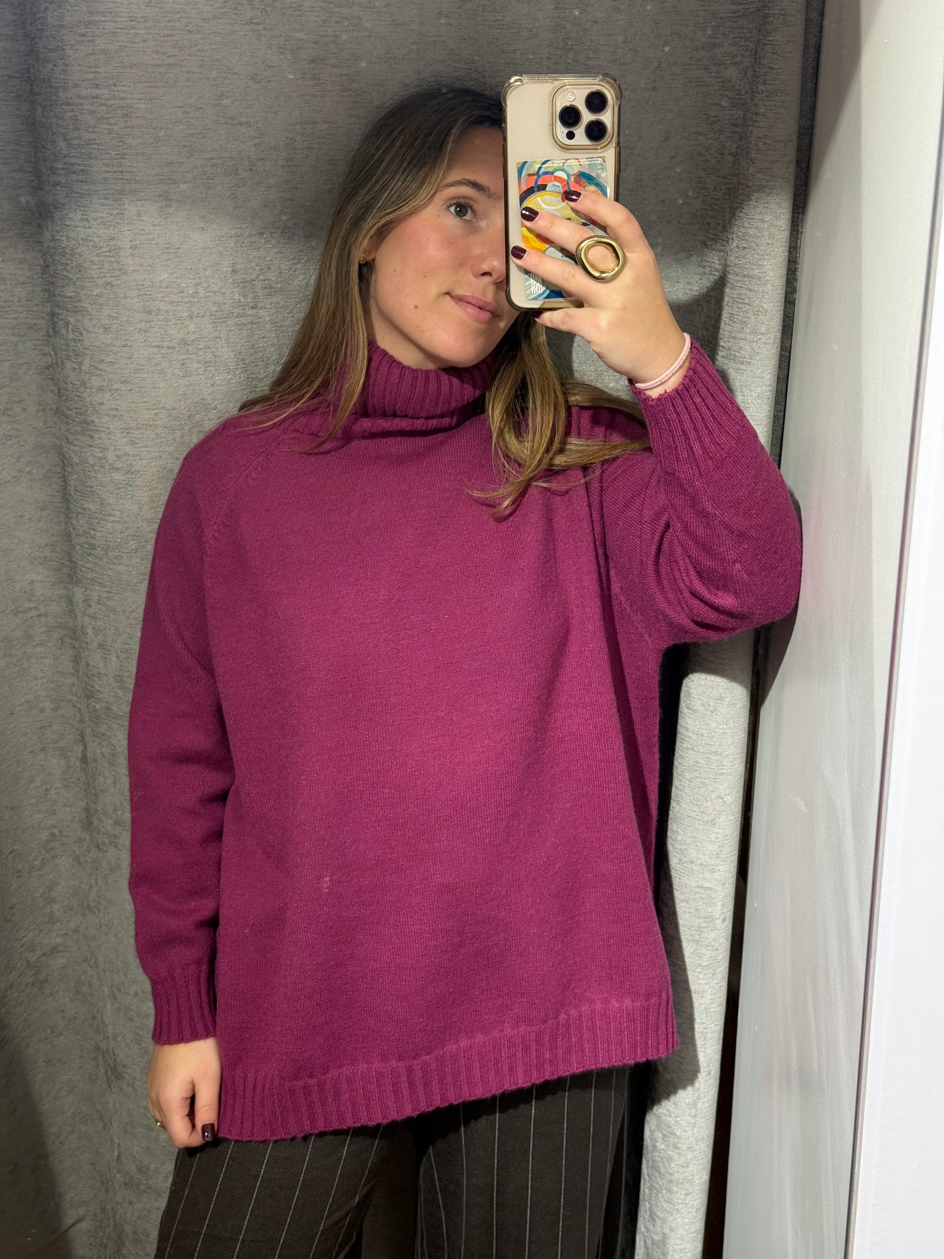 Jersey largo de cuello alto, más corto por delante que por detrás.