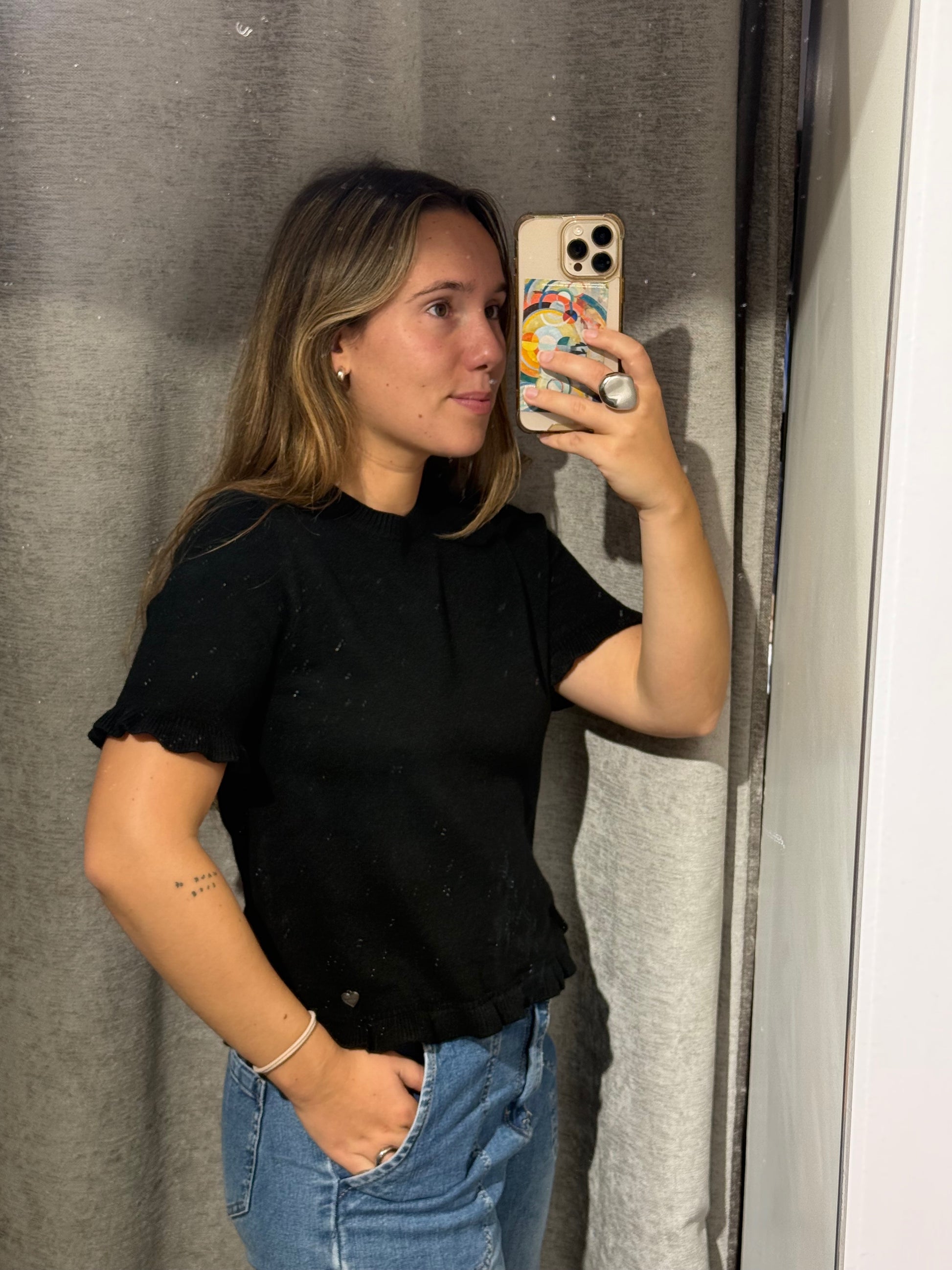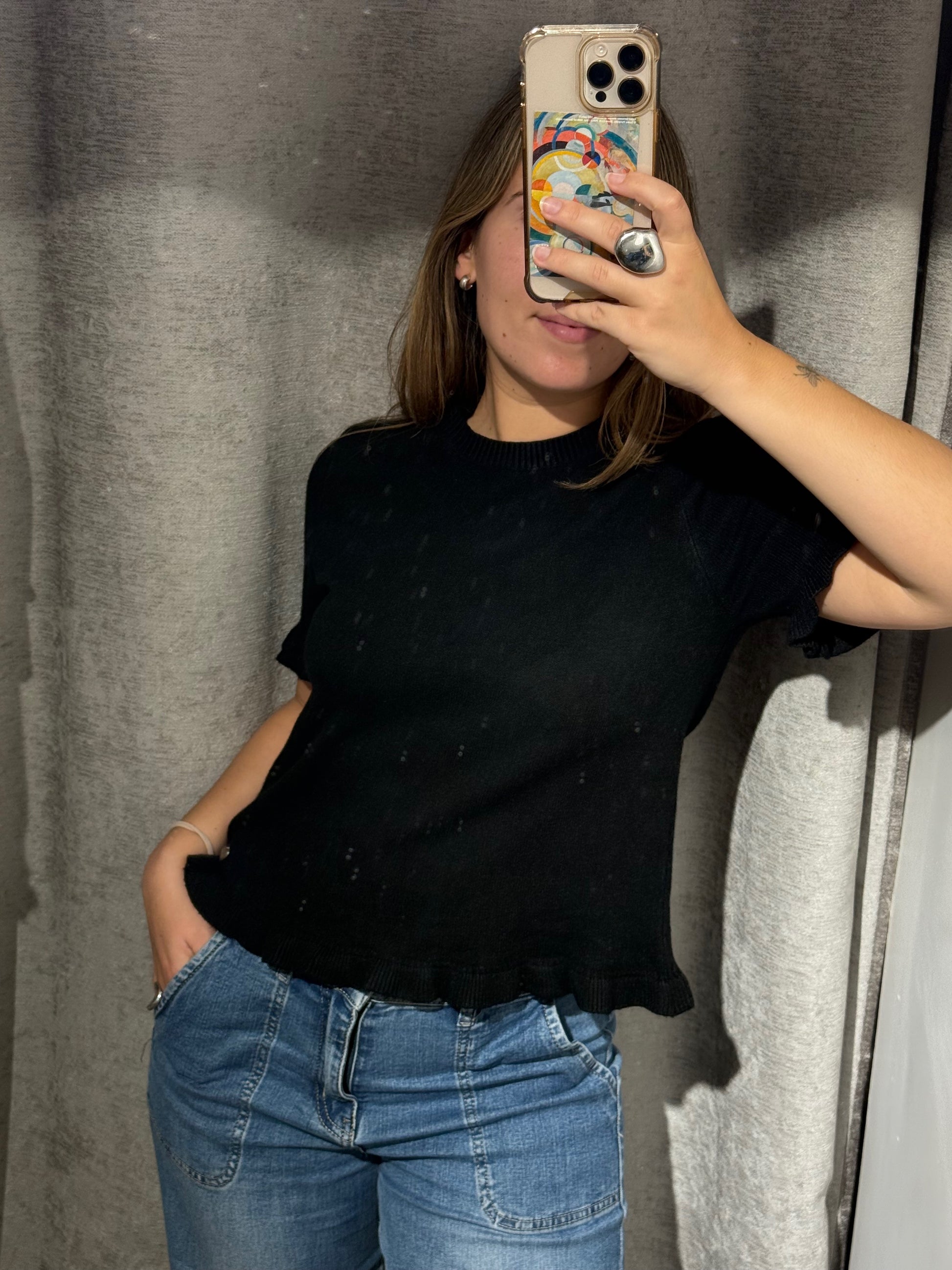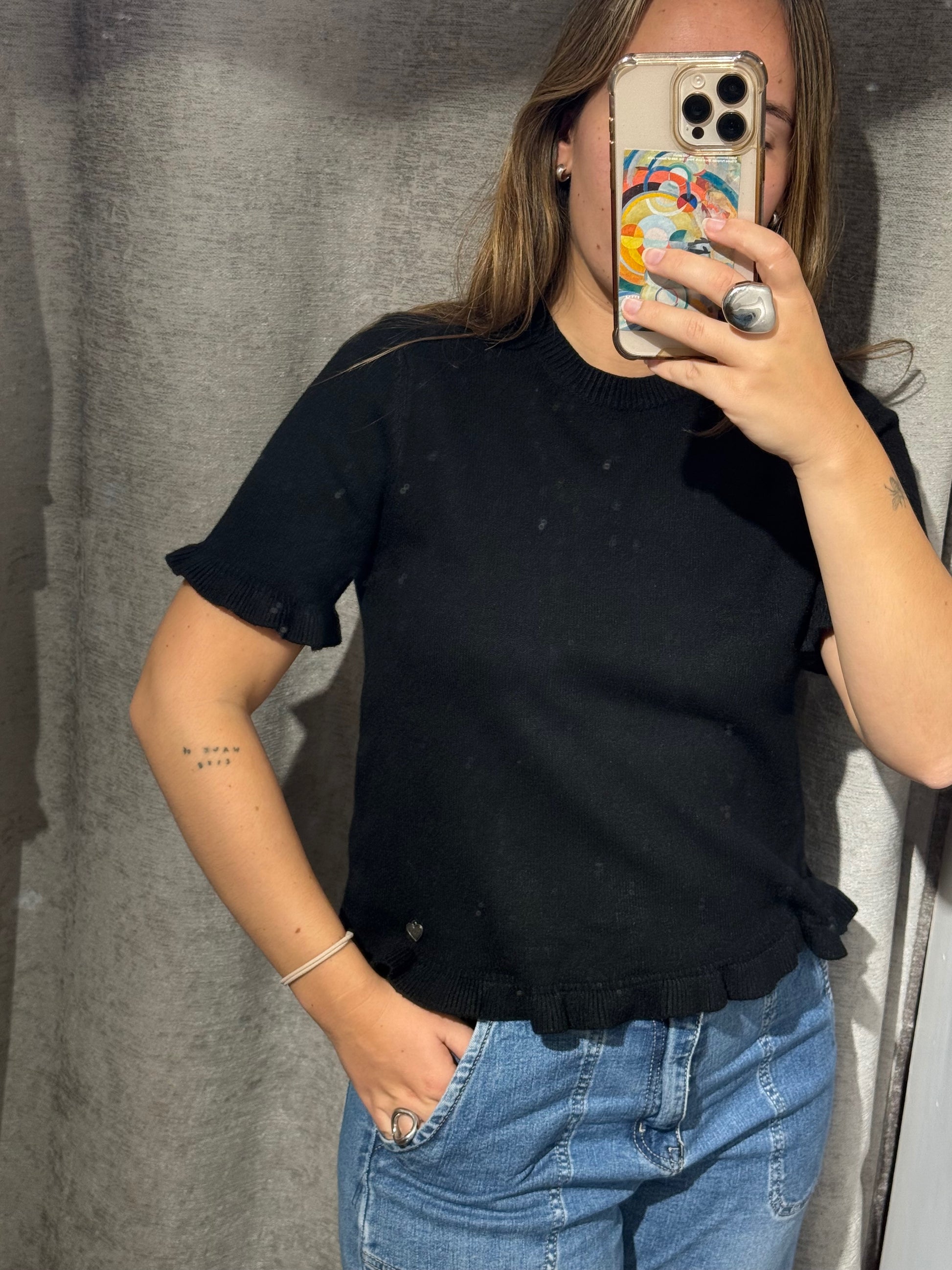 Jersey manga corta con volantes en la parte inferior de la manga y en el la parte inferior del jersey.