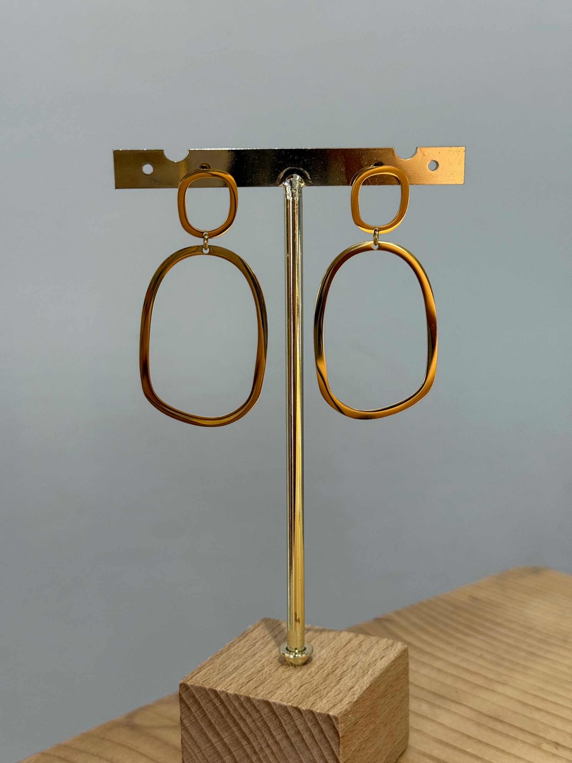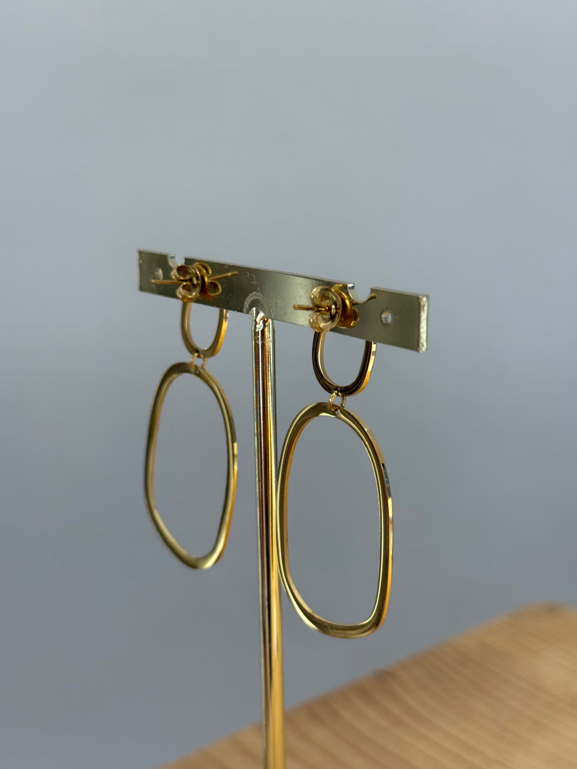 Pendientes largos de acero inoxidable dorado.