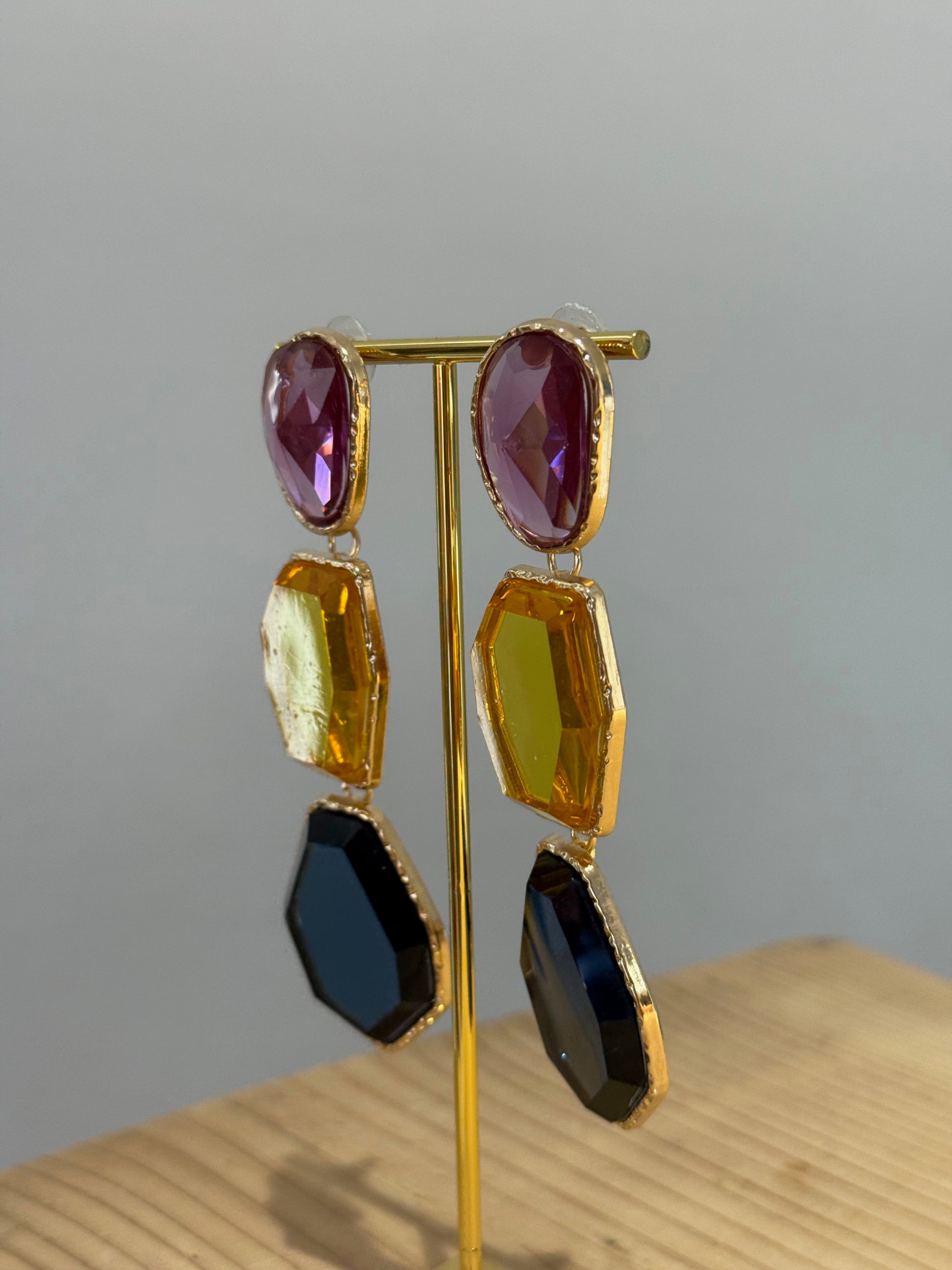 Pendientes largos de acero inoxidable, con piezas tipo cristal en diferentes colores