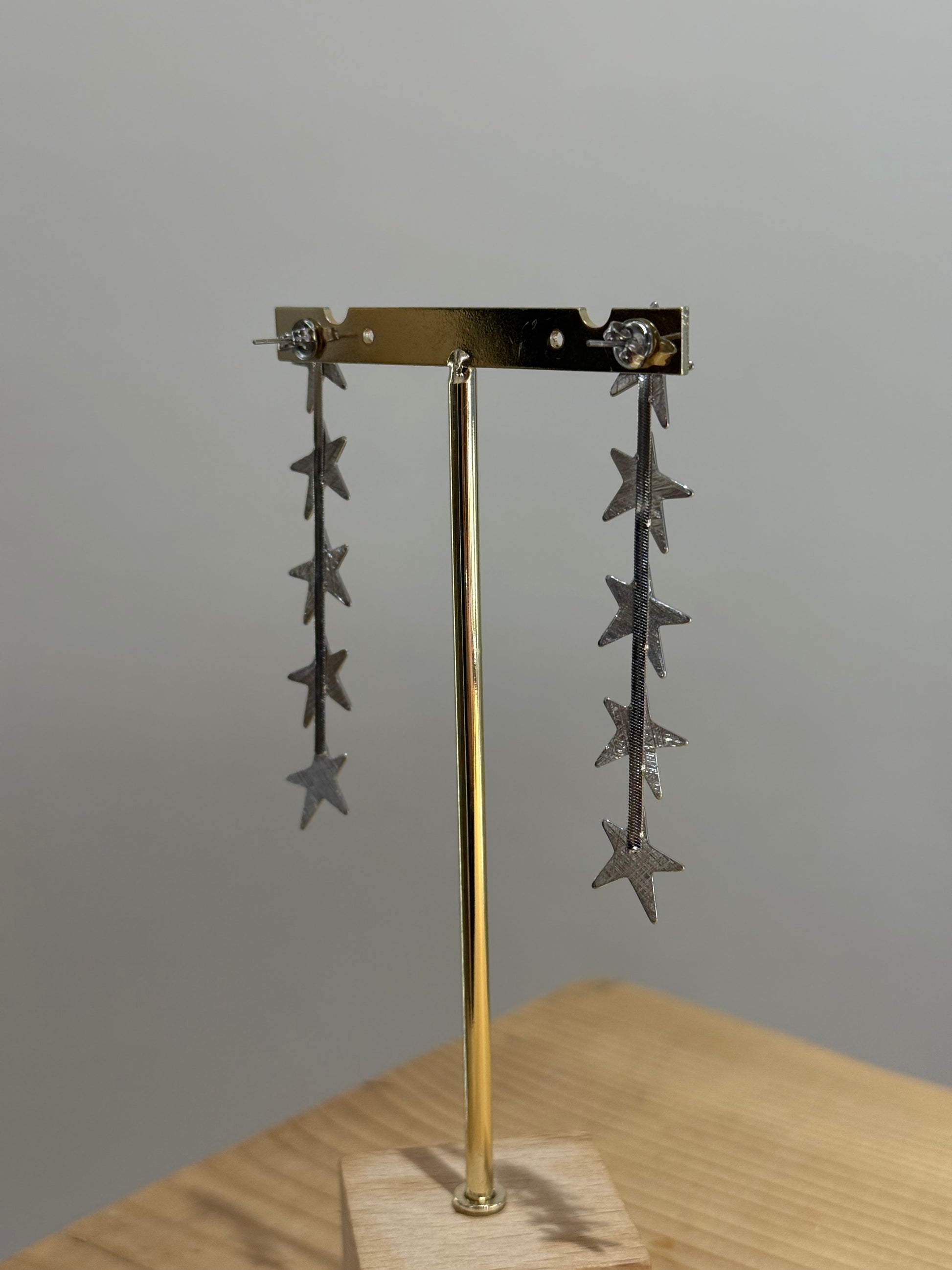 Pendientes largos de acero inoxidable plateado con estrellas pequeñas en fila.